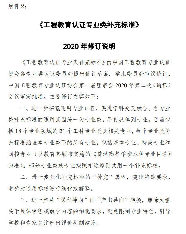 《工程教育认证专业类补充标准》2020年修订