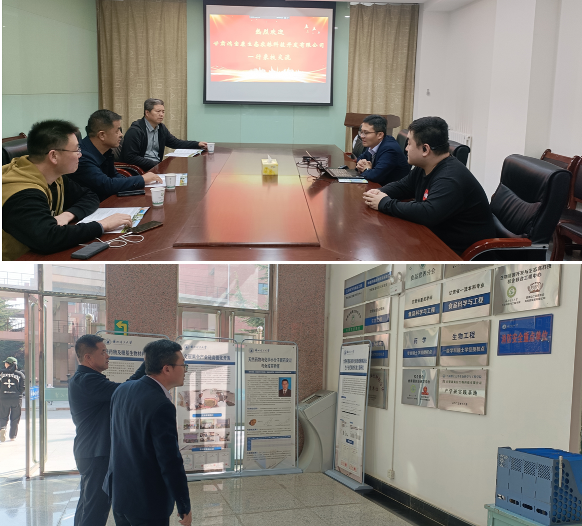 10月17日,张掖市甘肃鸿宝康生态农林科技开发有限公司(简称鸿宝康农林公司)一行3人到访k8凯发。双方在公司会议室开展座谈交流,公司副经理任海伟教授、食品科学与工程系田辉副教授、石任杰博士参会。