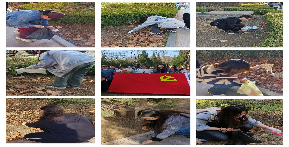 支部党员携带垃圾夹、环保袋等工具,重点清理树林中的塑料瓶、纸屑、枯枝等杂物。大家分工协作,细致排查卫生死角,共同维护校园整洁。