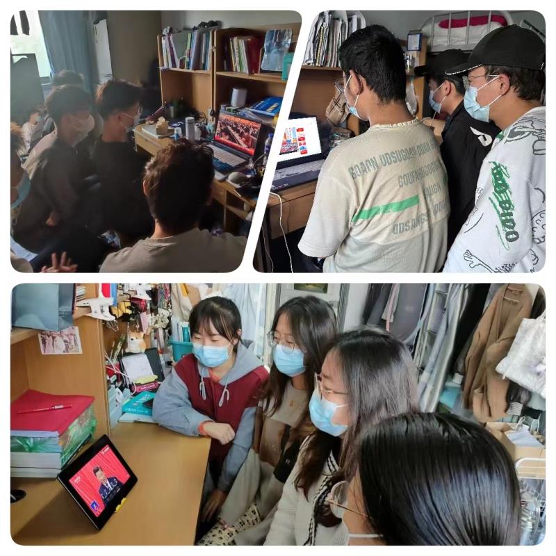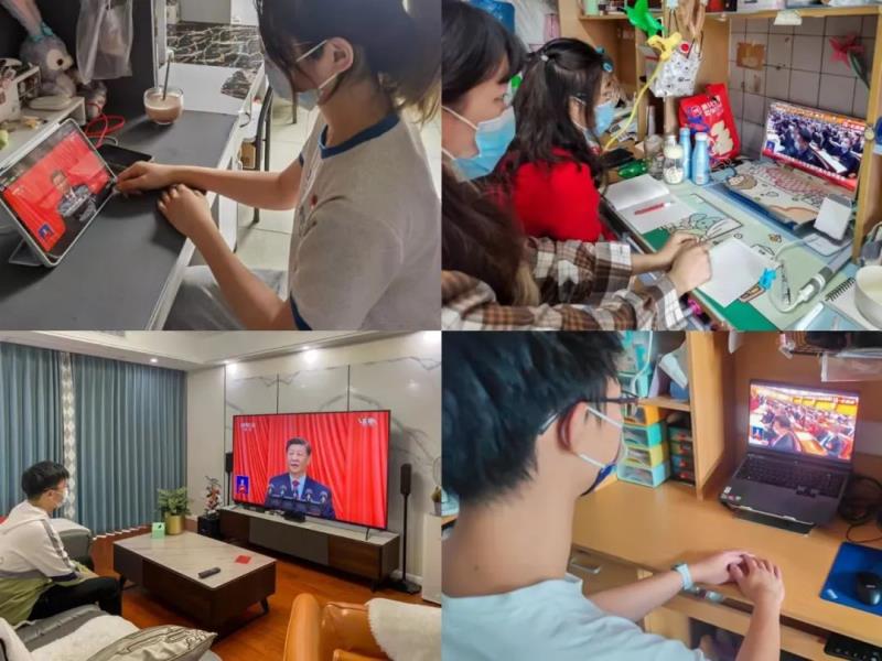 上午10:00,同学们准时守候在屏幕前,以各种方式收看党的二十大开幕会盛况,认真聆听、学习、热议习近平总书记的报告,并纷纷表示,未来将以更加昂扬的姿态砥砺奋进新征程,让青春在全面建设社会主义现代化国家的火热实践中绽放绚丽之花。