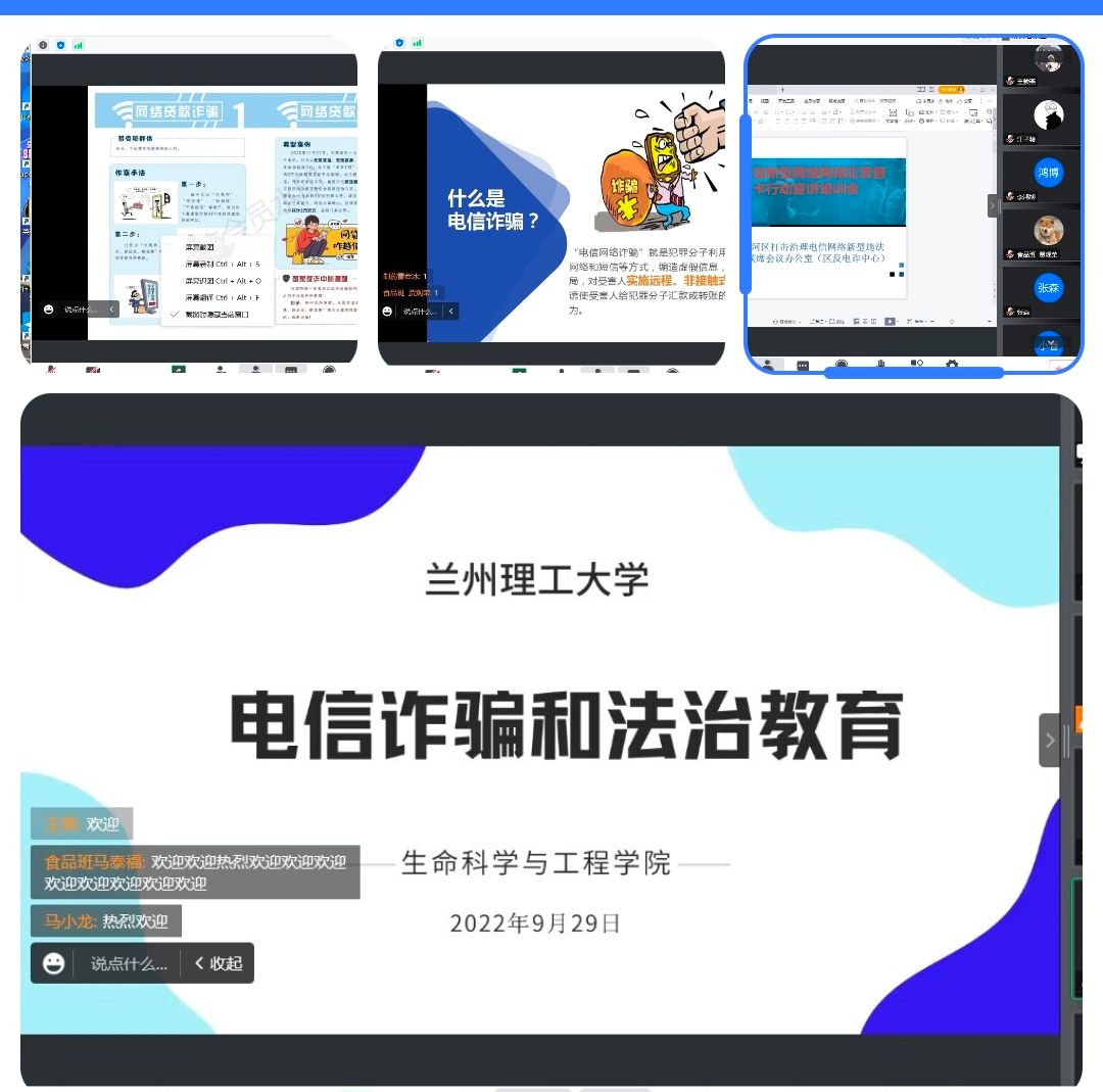 为增强员工法治意识,提高员工防电信诈骗能力,生命学院于9月29日19:30组织开展了防范电信诈骗网络安全教育活动,本次活动邀请七里河治理电诈联系会议办公室朱毅斌警官以线上讲座的形式开展,2022级全体新生参加了本次活动。