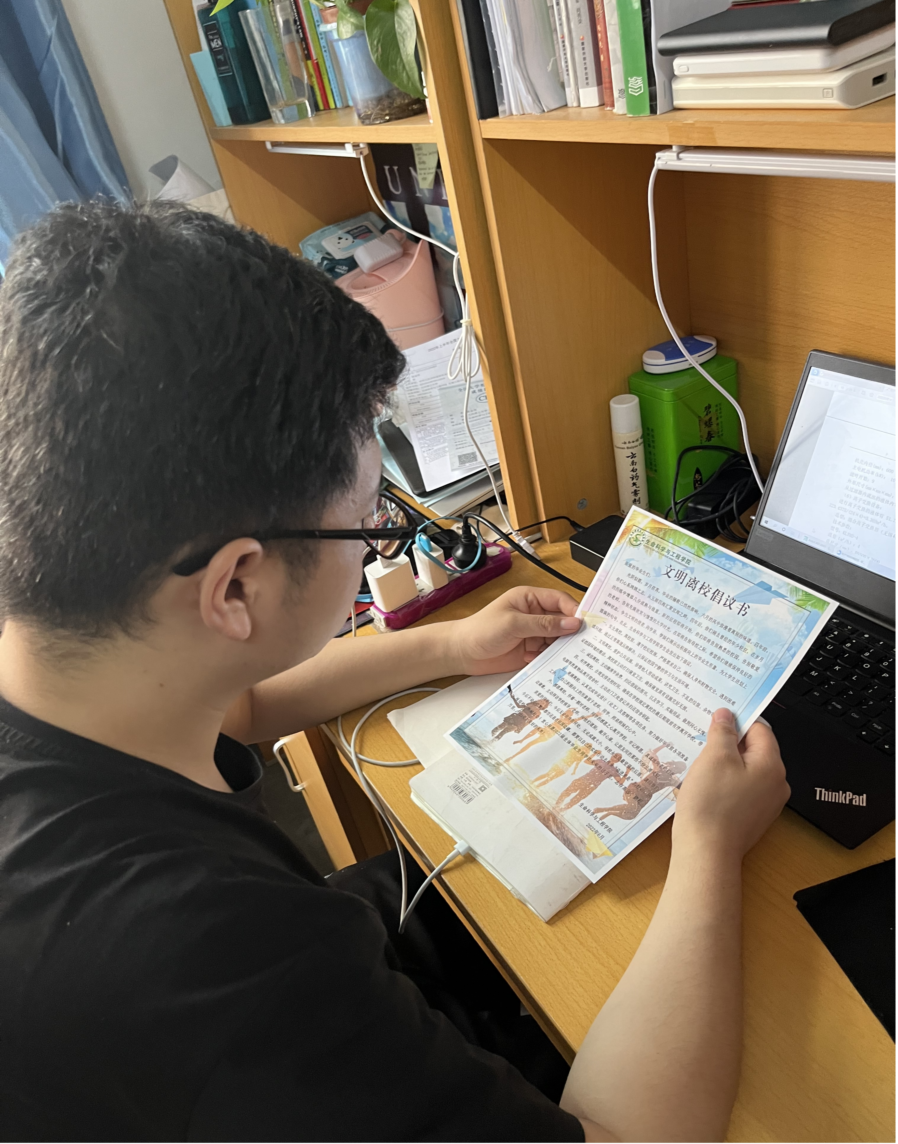 “我的宿舍,我的家”——寝室清扫、主动担当。为传承理工学子优良传统,给学弟学妹们“留下一间洁净宿舍”,毕业生党员主动作为,肩负起宿舍物品整理与卫生打扫职责,将寝室打扫得干干净净,将整洁的寝室留给母校作为一份“告别礼”,让宿舍以崭新的面貌迎接新的主人。公司也为毕业生购买了编织袋,以便员工打包行李。
