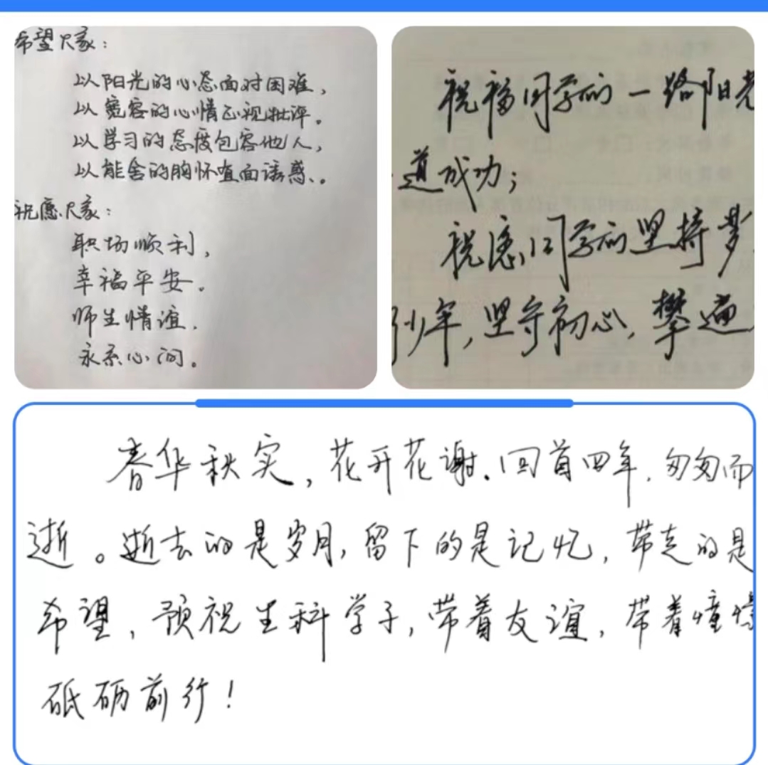 “我想对你说”——毕业生寄语恩师。在毕业离别之际,毕业班师生纷纷开展“浓浓恩师意,莘莘学子情”寄语感恩活动。在寄语中,老师们表达了对员工诚挚的祝福和殷切的希望,毕业学子们表达了对恩师深深的感谢和对母校的无限眷恋。