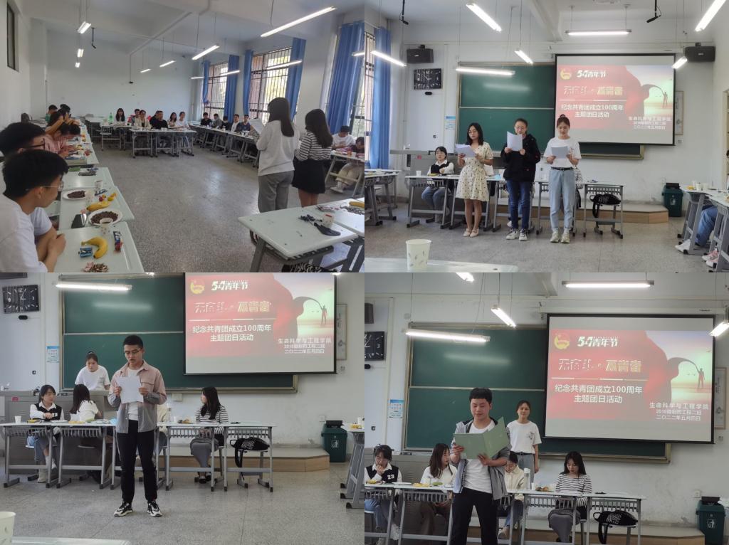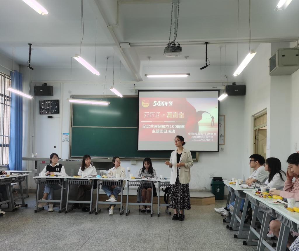 为切实做好团史学习、开展好庆祝建团100周年系列活动,以昂扬的斗志和精神状态迎接党的二十大胜利召开, 弘扬“五四”爱国精神,引导同学们争当时代先锋,2018级制药二班同学于2022年5月4日在6号楼108召开“无奋斗,不青春”主题团日活动。