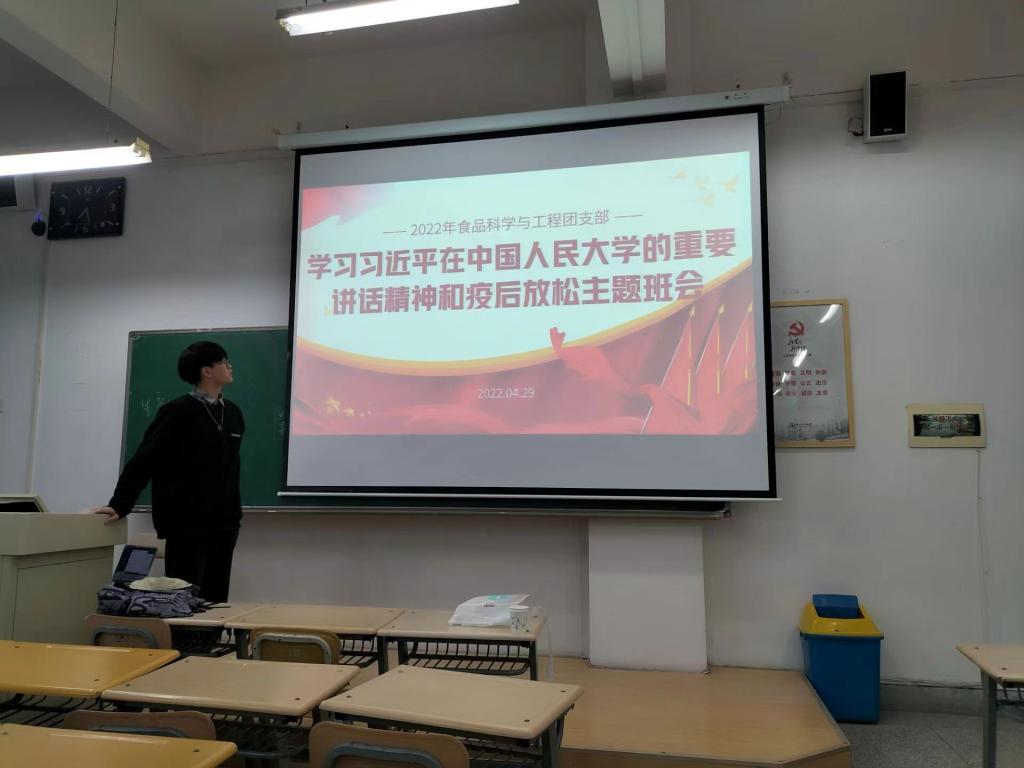 4月29日,21级食品科学与工程1班开展了以“争做堪当民族复兴重任的时代新人”为主题的班会。班会由团支部书记晋丹主持,首先带领同学们学习了习近平总书记视察中国人民大学重要讲话精神,全体同学认真观看学习了相关新闻报道并开展了深入学习和讨论,大家一致认为,本次重要讲话,是以习近平同志为核心的党中央送给全国团员青年的节日礼物,作为当代青年,我们会坚定不移听党话、跟党走,争做堪当民族复兴重任的时代新人。