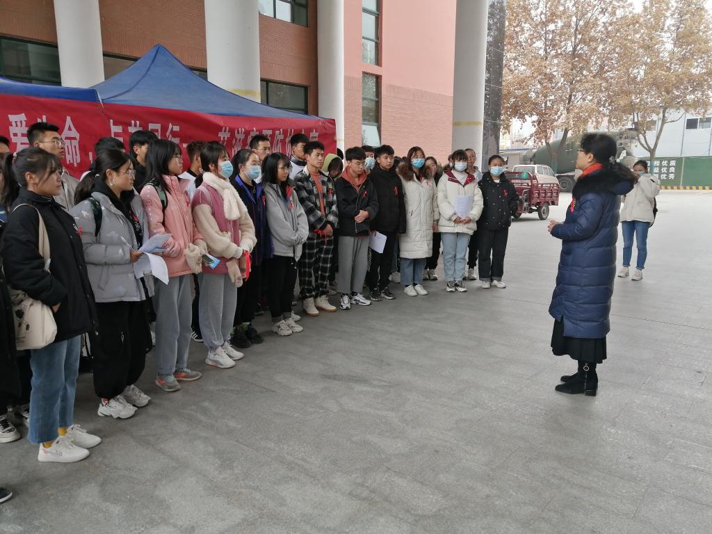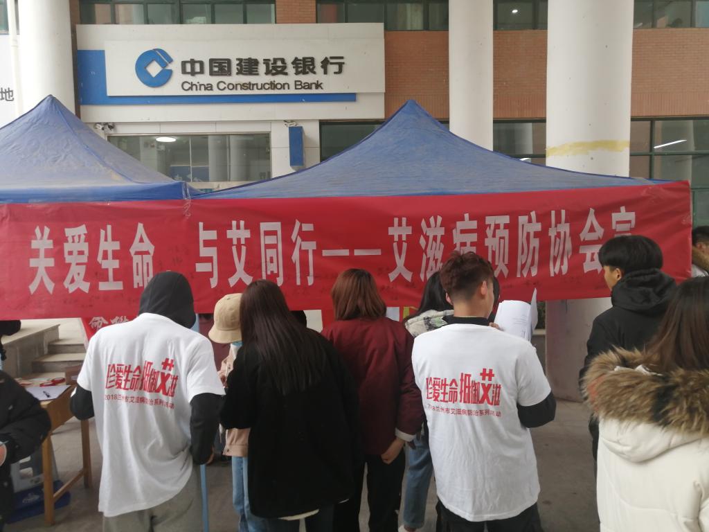 活动现场,悬挂2020年“世界艾滋病日”宣传主题口号“携手防疫抗艾 共担健康责任”海报,摆放防“艾”知识小手册、印有防“艾”知识的安全套等。武军莉首先给同学们讲解了宣传艾滋病预防的目的和意义,鼓励同学们要正确认识;随后周清松同学带领全体会员宣读关于“关艾生命”主题活动倡议书;接着防“艾”宣传员和志愿者向校内员工发放防艾知识手册和调查问卷,用通俗易懂的语言向大家介绍艾滋病知识,让大家明白艾滋病就在我们身边,预防艾滋病刻不容缓,只有知晓艾滋病才能预防艾滋病。最后志愿者们佩戴红丝带“为艾”助跑,通过环校园跑让更多的同学了解、参与并“艾”协的工作,了解更多的关于艾滋病的知识。