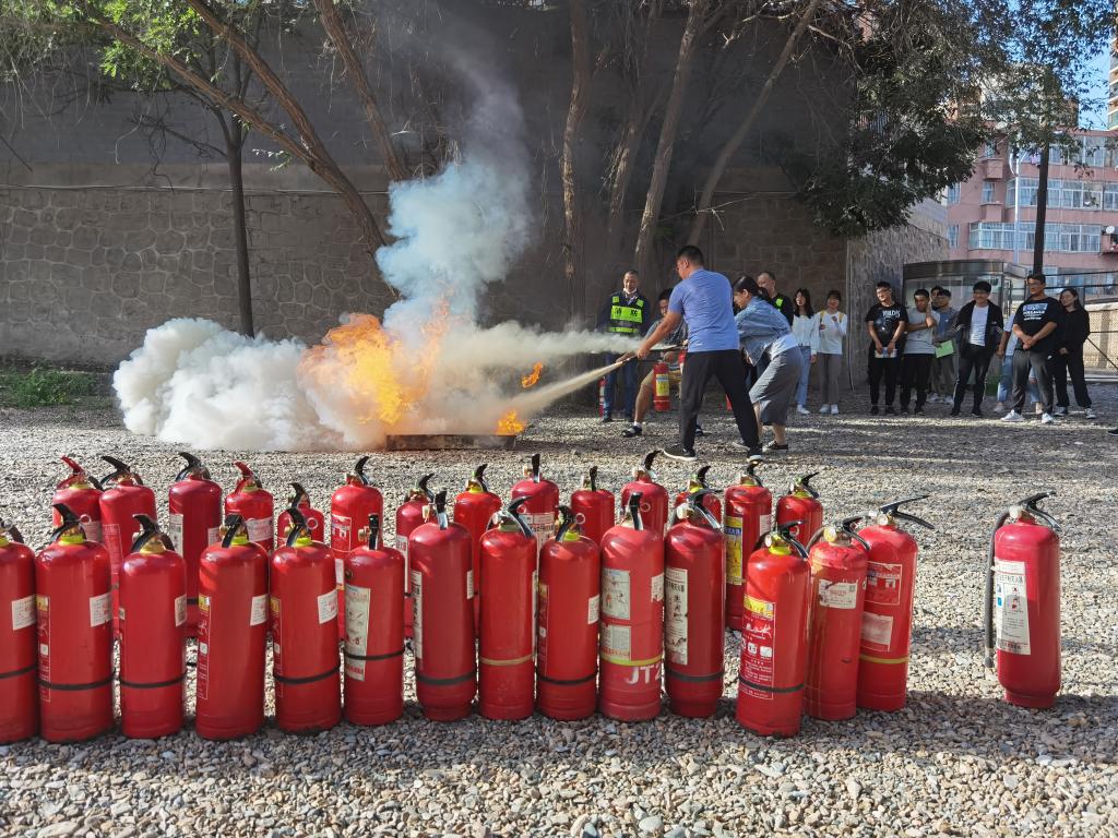 接着,保卫处魏老师又跟大家讲解了消防安全方面的知识,还带领大家实地参加了消防实战演练,并给大家讲解了如何正确使用灭火器灭火,以及遇到火灾如何正确紧急避险等知识,进一步增强了同学们的消防安全意识,提高了自救防范能力。