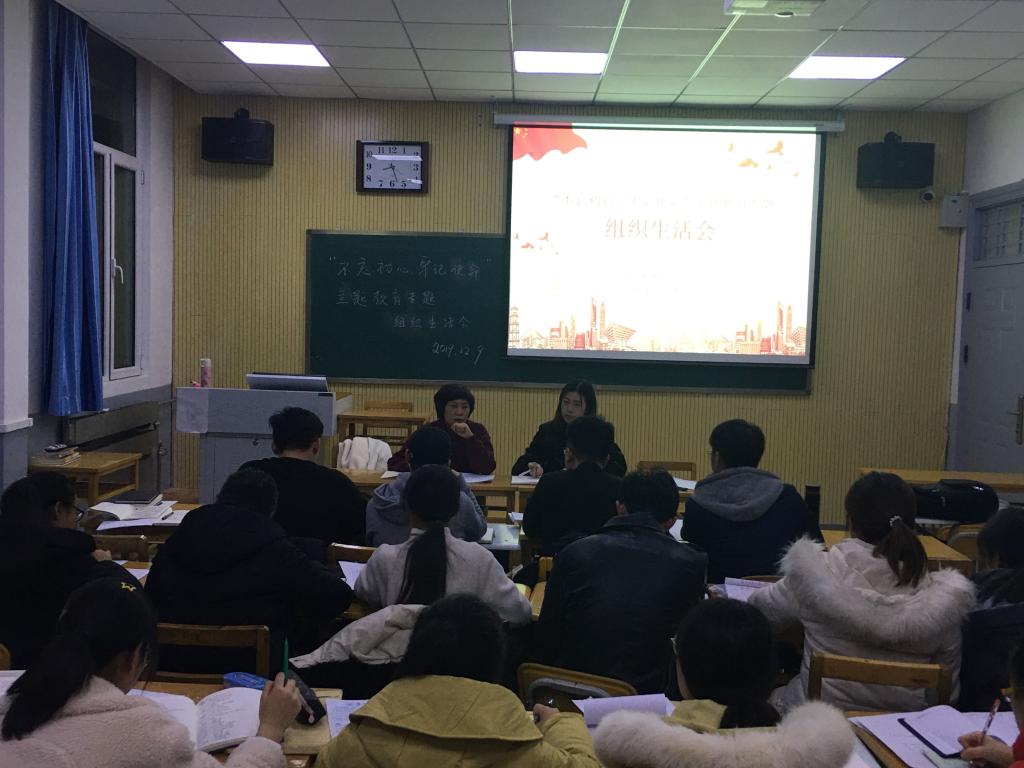 k8凯发生物工程本科生党支部于2019年12月9日晚19:30在兰工坪1号楼127教室召开了“不忘初心、牢记使命”主题教育专题组织生活会,本次会议邀请了公司纪委刘佳姜副书记,由支部书记蓝雯琳老师主持,生物工程本科生党支部全体党员参加。