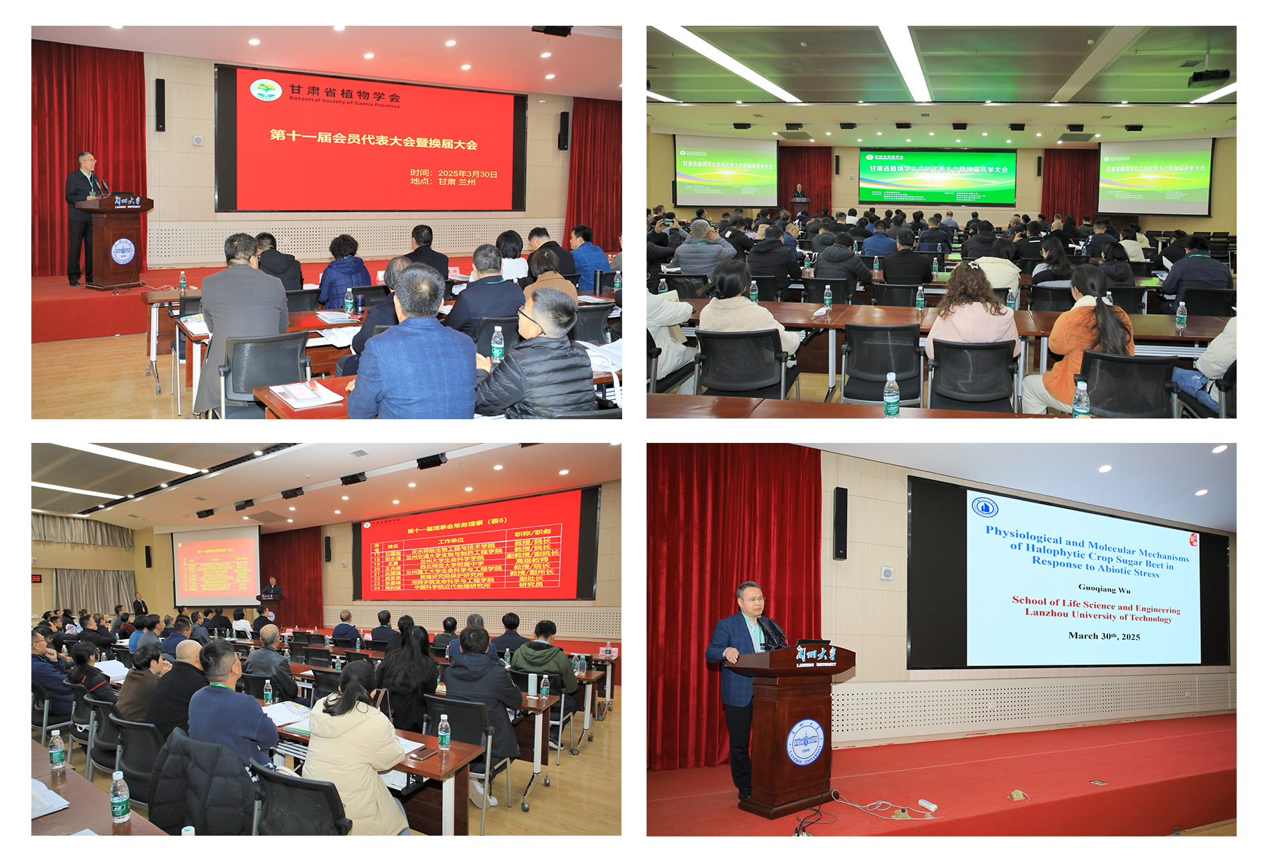 甘肃省民政厅社会组织管理局马斌处长、甘肃省科学技术协会孙华部长、北京林业大学安黎哲教授、中科院植物研究所郭亚龙研究员和兰州老员工命科学公司经理侯岁稳教授等领导和嘉宾出席会议。参会会员以无记名投票的方式选举产生了甘肃省植物学会第十一届理事会理事。公司伍国强教授当选甘肃省植物学会第十一届理事会常务理事,并应邀做了题为“Physiological and molecular mechanisms of halophytic crop sugar beet in response to abiotic stress”的精彩报告。报告详细介绍了嗜盐作物甜菜响应非生物胁迫的生理和分子机制,展示了该团队在该领域的最新研究成果。