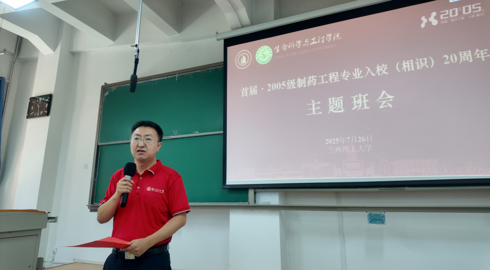 主题班会,师恩友情话当年。上午 9 时 30 分,西教 1 号楼 105 教室的主题班会拉开帷幕,这里曾是同学们当年上课的熟悉场所。班主任杨爱梅老师率先致辞,她深情回忆起同学们当年在教室讨论实验方案、在实验室反复调试数据的青春模样,“看着大家从青涩学子成长为各行各业的骨干,作为老师无比骄傲,母校永远是你们的‘家’”。会上,副经理王永刚向员工们介绍了公司近年来在专业建设、团队队伍、科研成果等方面的发展成就,肯定了员工们在制药行业各领域的深耕与担当:“你们在生产一线践行工匠精神、在研发领域突破技术难关、在监管岗位守护用药安全,用实干诠释了兰理工‘奋进求是’的校训。”公司老领导及代课教师李志忠老师在发言中感慨:“光阴似箭,二十年前的青春岁月仍是人生最珍贵的财富。能与同窗相聚、与恩师重逢,这份情谊比金坚。” 杨中铎、杨林、张新国、杨明俊、张飞老师也纷纷寄语,祝福员工们事业顺遂,期待常回家看看。