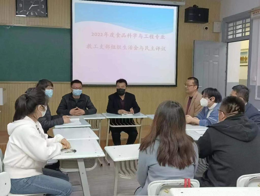 为深入学习贯彻党的二十大精神,坚持不懈用习近平新时代中国特色社会主义思想凝心铸魂。按照公司党委《关于召开2022年度基层党组织组织生活会和开展民主评议党员的通知》(兰理工党发[2023]1号)精神要求和公司党委的安排,3月24日晚7:00,食品科学与工程系教工党支部在毓英楼203召开2022年度组织生活会暨民主评议党员大会。