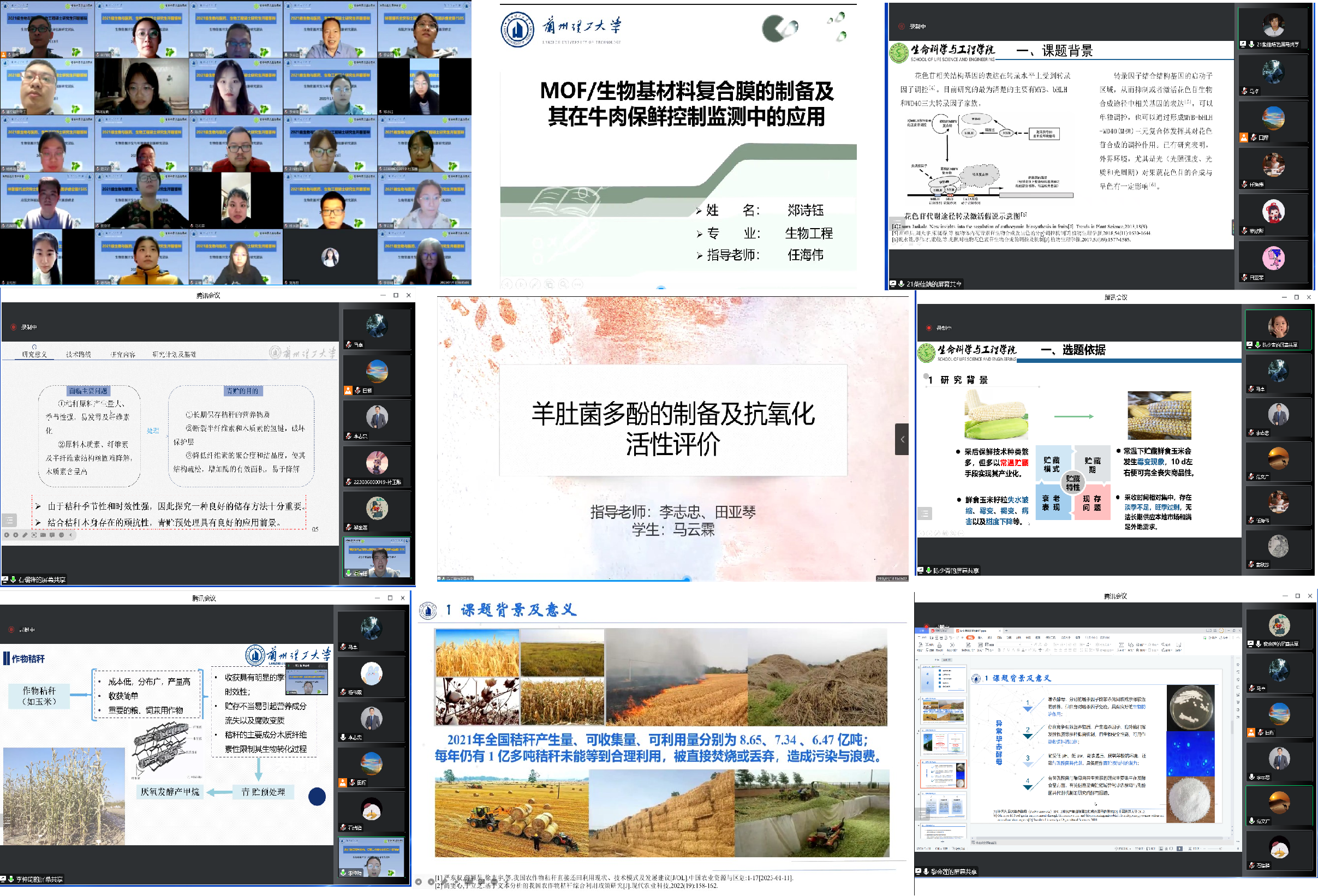2021级马卓、柴佳靖、李思琦、马云霖和李仲琦等11名生物工程学术硕士、生物与医药专业硕士研究生就“地衣芽孢杆菌生物学特性及其芽孢控制”“鲜切百合鳞茎花色苷生物合成MYB转录因子的筛选”“纳米纤维素/MOF复合气凝胶制备与葡萄保鲜”“羊肚菌多酚的制备及抗氧化评价”“木质纤维降解菌系对青贮秸秆厌氧消化的影响”等选题进行了陈述。答辩委员在严谨和严肃科研问题的质疑和梳理时,提出了“PPT图文并茂可以更美观、实验方案设计可以更细致、文献综述重点可以更突出、创新点凝练可以更清晰”等建议和意见,并“一致同意通过中期答辩”。