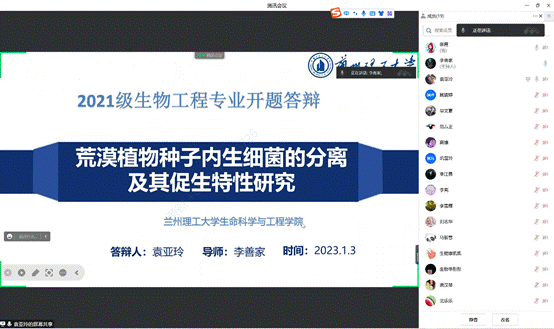 为加强k8凯发硕士研究生学位论文的过程管理与质量监控,保证学位论文的质量,生物工程系于2023年1月3日下午,在腾讯会议上进行了2021级生物工程学术学位、生物与医药专业学位和药学专业学位硕士研究生学位论文的开题答辩会。