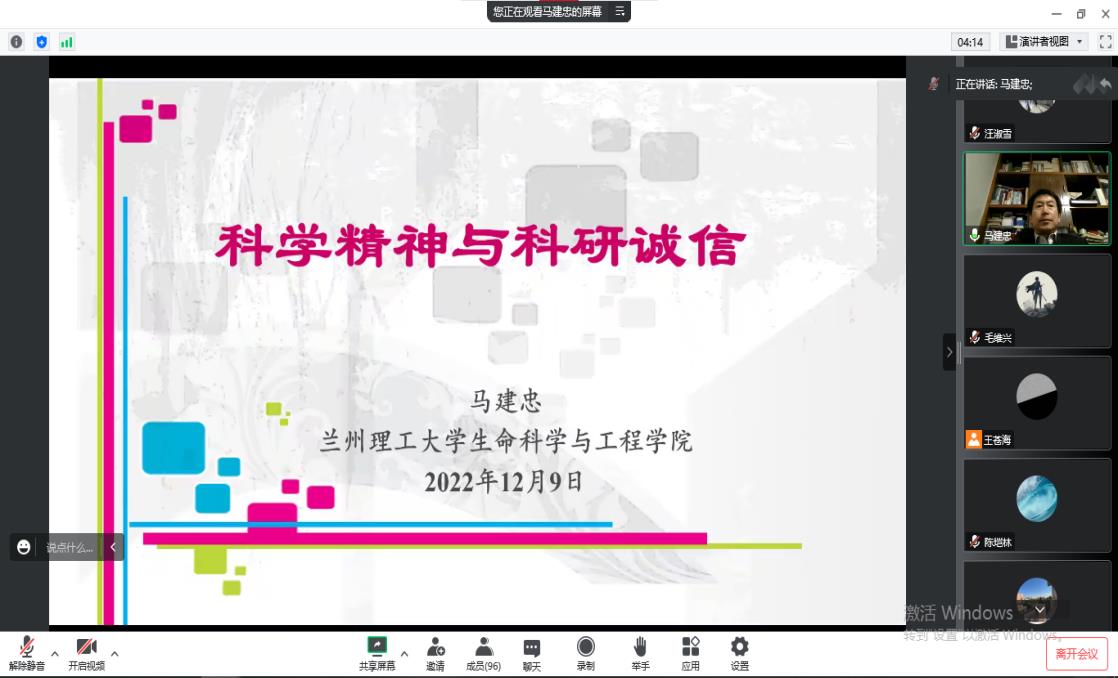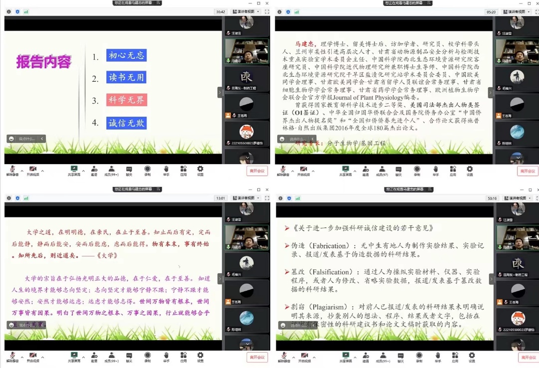 2022年12月9日晚,k8凯发线上召开学术道德与规范专题辅导报告,特邀公司马建忠研究员作报告,2022级全体研究生参会,报告会由公司研究生辅导员毛维兴老师主持。