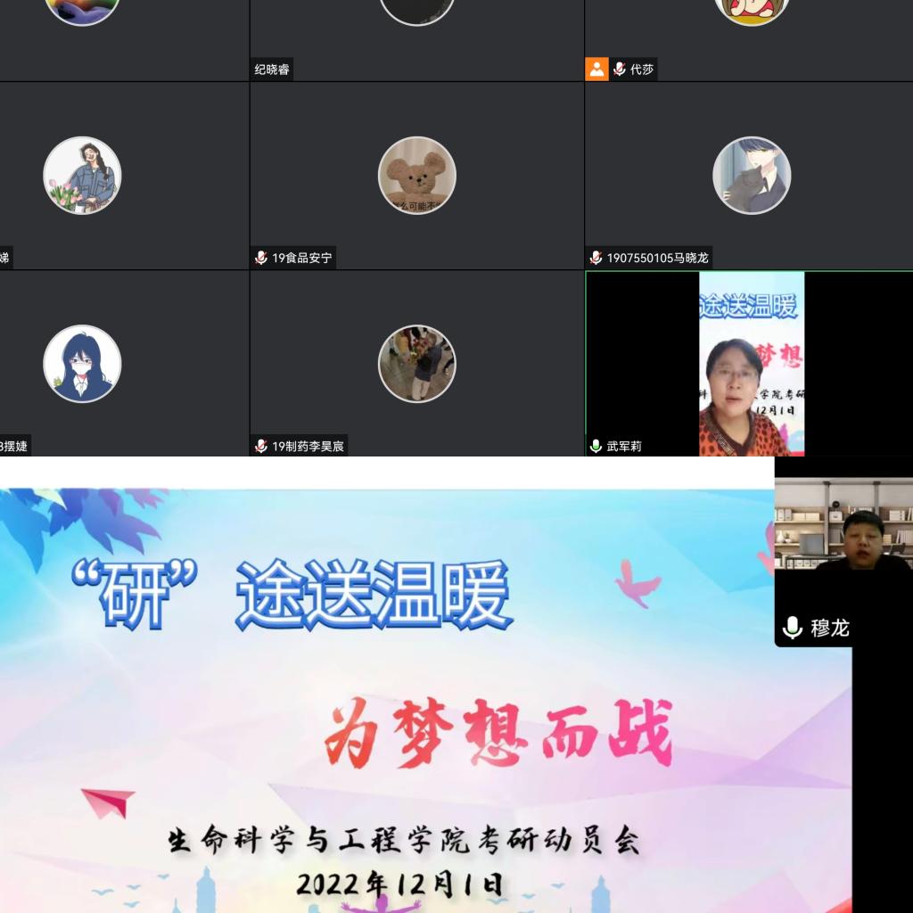 2023年全国硕士研究生招生考试即将到来之际,为助力广大考研学子坚定信心,纾解压力,12月1日晚,k8凯发组织全体留校考研员工召开线上动员大会,并送上精心准备的“考研加油包”。公司党委书记穆龙、经理伍国强和辅导员代莎参会。会议由党委副书记武军莉主持。