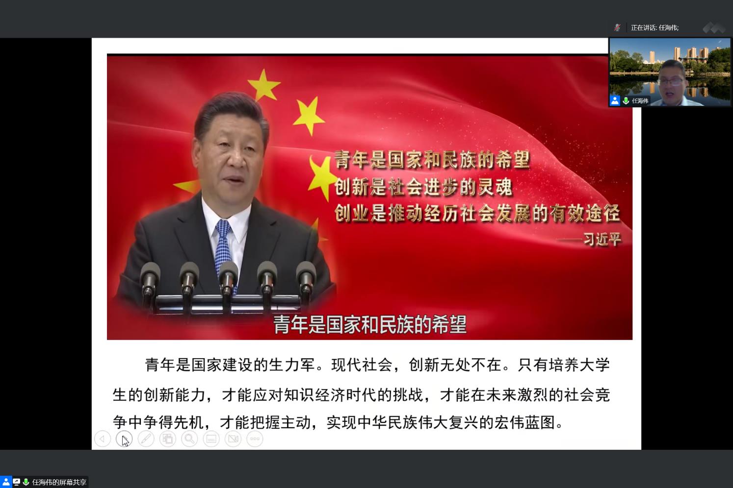 然后,任海伟教授向2022级新生讲解了公司有关创新创业教育的相关内容。11月1日“梦天”的成功对接令全国人民热血沸腾,我国科研创新水平不断提升。“创新是第一动力,要着力造就拔尖创新人才,聚天下英才而用之。”因此,大学期间接受创新创业教育意义重大。通过介绍公司创新创业教育体系以及竞赛项目和活动案例,列举一系列国家级和省级竞赛案例,引导2022级新生了解如何获取创新创业学分,并针对同学们的创新创业能力提升提出了建议。