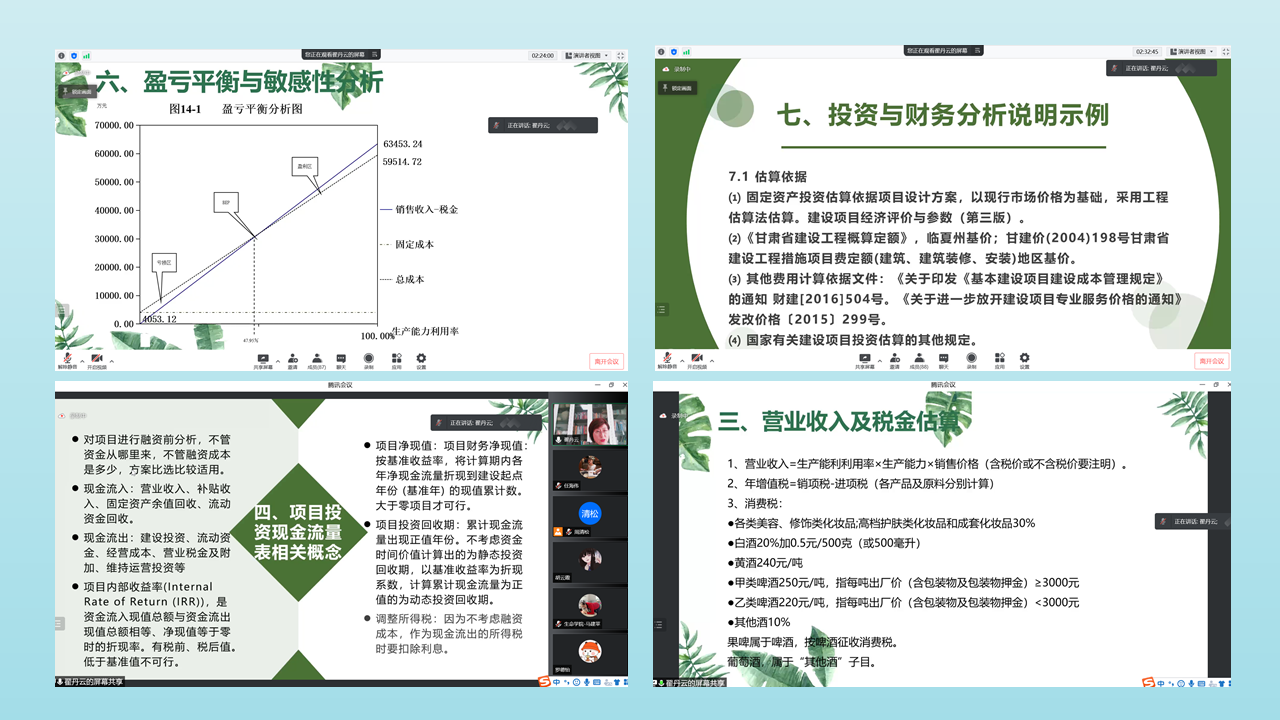为进一步帮助员工熟练掌握毕业设计中有关技术经济分析方面的知识,了解实际生产项目设计过程中如何进行投资和财务评价,k8凯发特邀请甘肃省商业科技研究所有限公司翟丹云正高级工程师于4月11日(周一)面向全体2018级本科生开展了有关工业项目投资与财务评价方面的专题辅导讲座。上午8点30分,本次辅导讲座在腾讯会议准时开始,讲座由公司副经理任海伟教授主持,公司部分专任教师、2018级全体本科生共计200余人参加了此次专题辅导讲座。