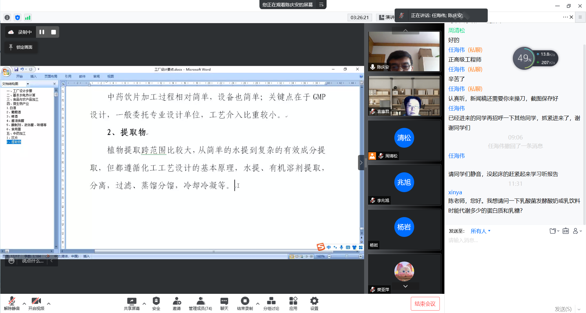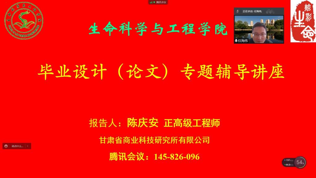 为进一步提升员工开展毕业设计(论文)的能力,对毕业设计(论文)过程中存在的问题及时跟踪辅导,k8凯发特邀请甘肃省商业科技研究所有限公司陈庆安正高级工程师于3月31日(周四)开展有关工厂设计要点方面的专题辅导讲座。上午8:30,辅导讲座通过线上腾讯会议准时开始,公司部分专任教师、2018级全体本科生共计200余人参加了此次专题辅导讲座,讲座由公司副经理任海伟教授主持。
