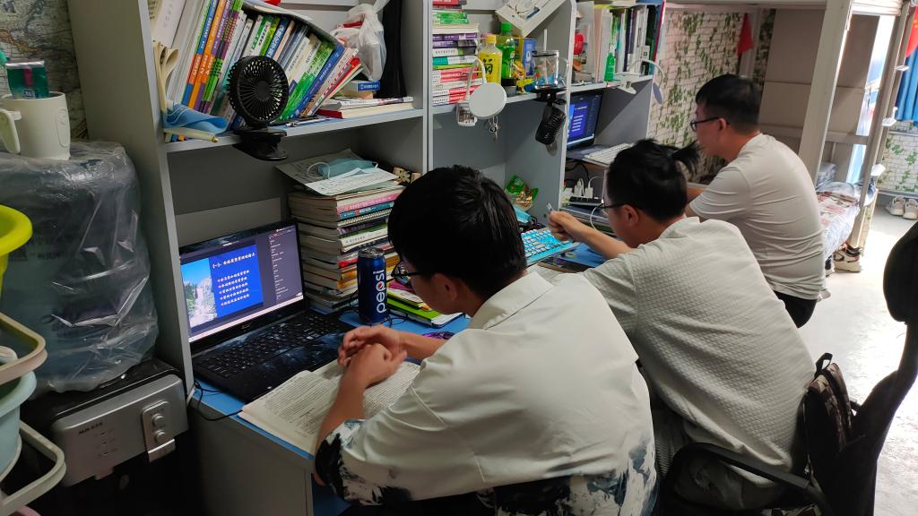 同学们在宿舍认真进行线上学习
