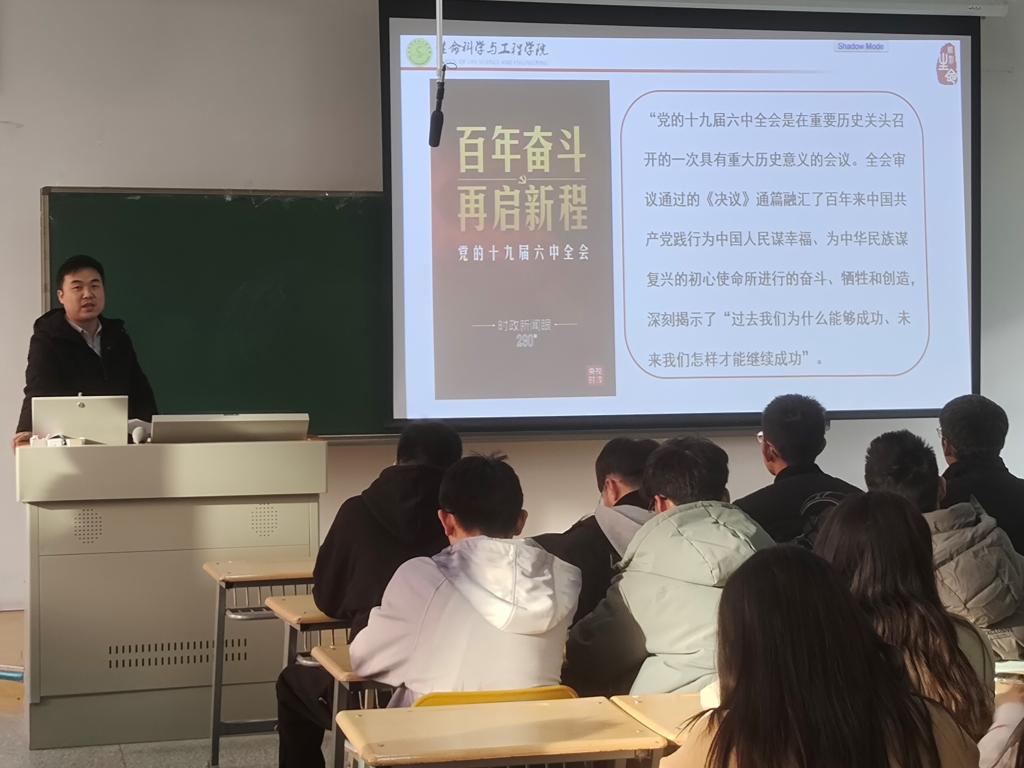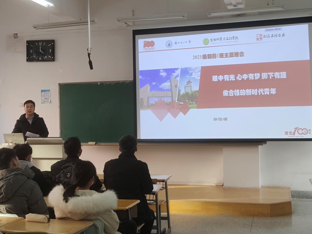 中国共产党第十九届中央委员会第六次全体会议于2021年11月8日至11日在北京举行,连日来,全校师生通过第一时间多种渠道收听收看党的十九届六中全会并开展热烈讨论。2021年12月13日21级制药工程一班在彭家坪校区集贤楼201教室,结合党的十九届六中全会精神宣讲,开展了题为“眼中有光 心中有梦 脚下有路 做合格的新时代青年”的主题班会,认真学习了党的十九届六中全会精神,并积极开展了专题学习与心得交流。本次班会由21级制药工程一班班主任孙伯禄老师主持,21级制药工程一班全体同学参加。