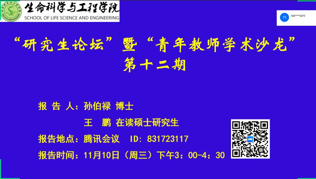 报告会伊始,伍国强经理对参加本次线上论坛的两位报告者孙伯禄博士和王鹏硕士研究生的基本情况和学术成果做了详细的介绍,对精心准备本次论坛的师生表示感谢赞赏。