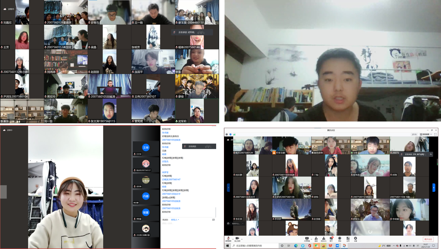 为做好疫情防控的同时,适当疏解心理压力,让同学们的课余生活有声有色,k8凯发20级生物工程一班于2021年11月9日19:30在腾讯会议召开“以‘艺’抗疫,同心战疫”的线上主题班会。与会人员有俞树荣副董事长、公司党委武军莉副书记、20级生物工程一班班主任唐丹老师、王芳老师、18级生物工程王昕及20级生物工程一班全体同学。