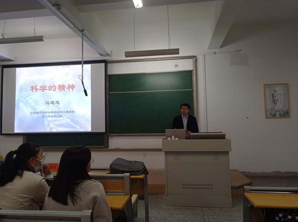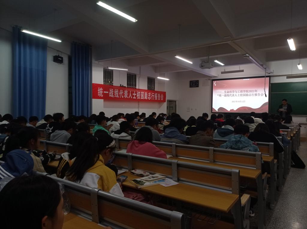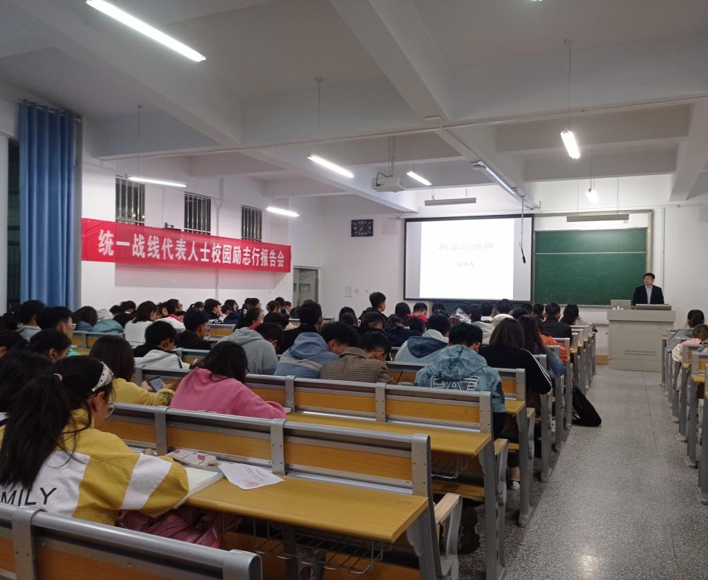 2021年10月12日在集贤楼106举办“统一战线代表人士校园励志行”报告会,邀请集团侨联主席、归国留学人员、k8凯发生物工程系学科带头人马建忠研究员作题为“科学的精神”的报告,2021级全体同学及部分青年教师参加了报告会。