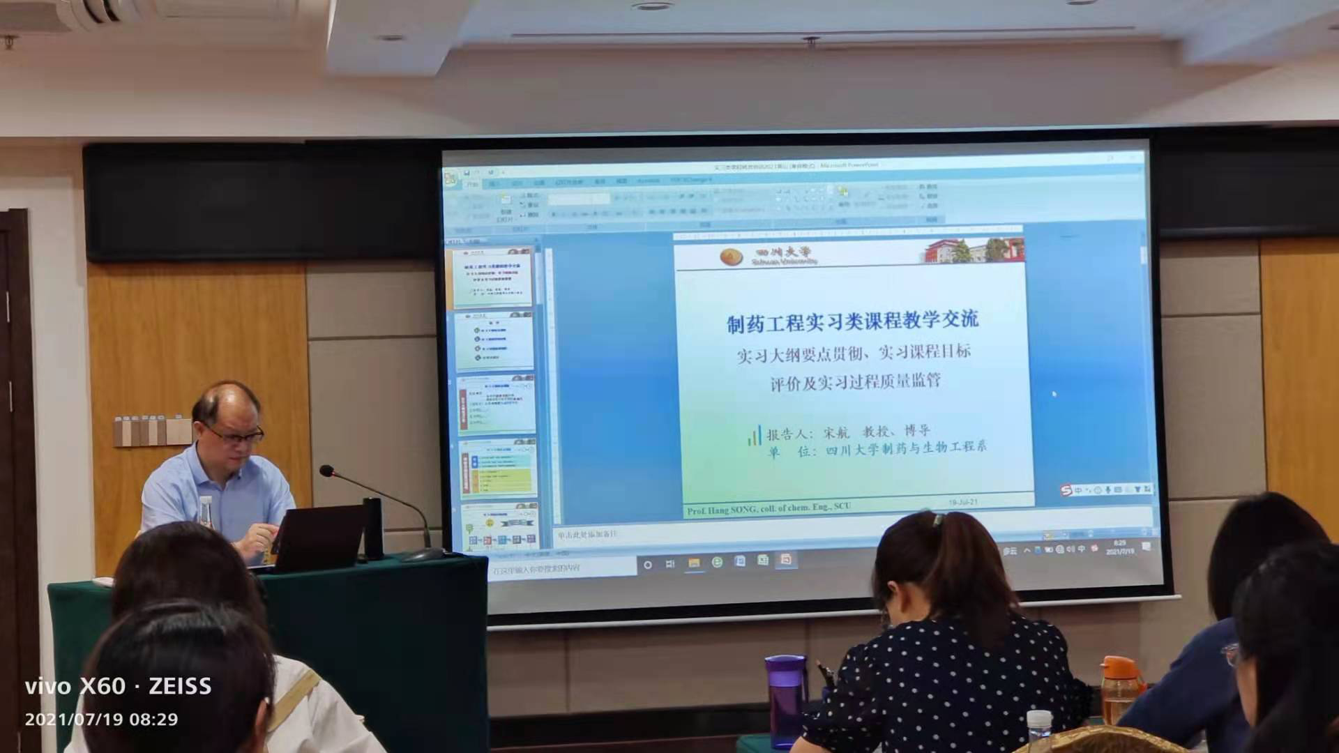 《制药工程专业设计类课程》研讨会由合肥工业大学姚日生教授主讲。专家们主要从现代医药工程建设项目的规划与实施,制药工艺设计要点与典型案例分析,对标制药工程专业认证实训建设要求的实施方法,制药工程工艺设计方法,制药工程仿真体系与教学实践,原料药生产工艺流程与车间布置设计,制剂生产工艺流程与车间布置设计,制药设备工艺设计,设计说明书中的项目经济与EHS分析等方面进行了讲授。