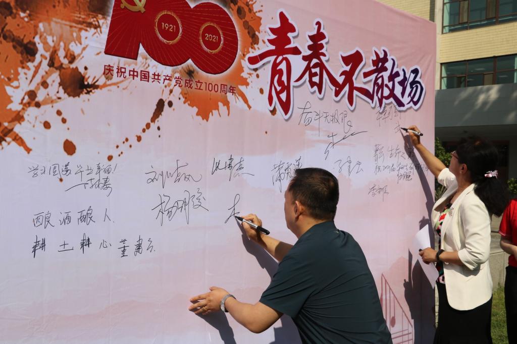 领导老师在毕业生纪念墙留下祝福