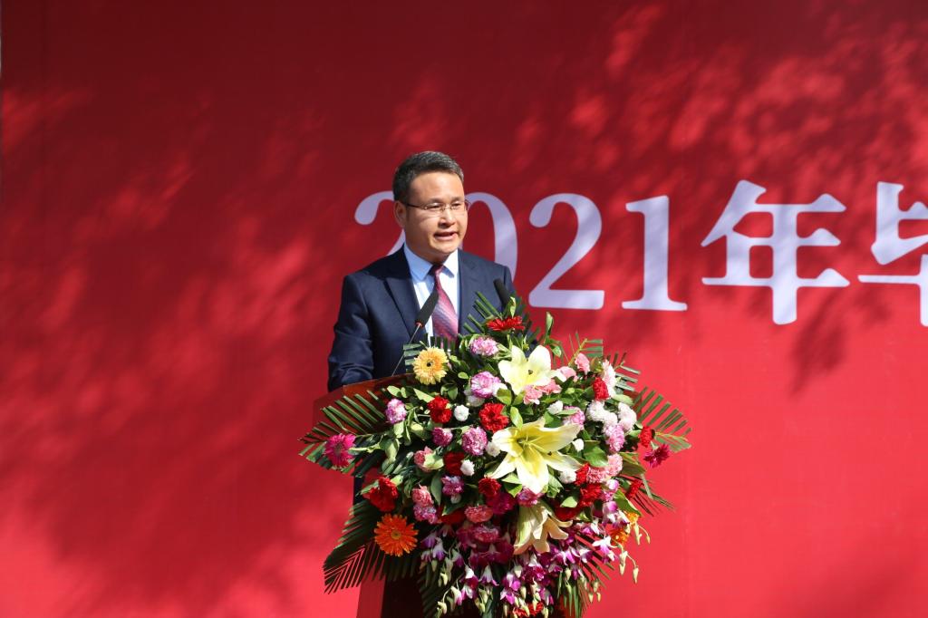 伍国强经理向毕业生们顺利毕业表示热烈的祝贺,向为了毕业生们的成长而不辞辛劳、倾心付出的老师们、家长们表示衷心的感谢和崇高的敬意!伍经理叮嘱同学们在未来的生活中要常行善良事、常怀乐观心、永葆少年气;祝福2021届毕业生奋勇前行,前程似锦;希望同学们久久为功,勇敢肩负起时代重任,勤奋进取,在实践中增长才干,努力在实现中华民族伟大复兴的中国梦的生动实践中放飞青春梦想。