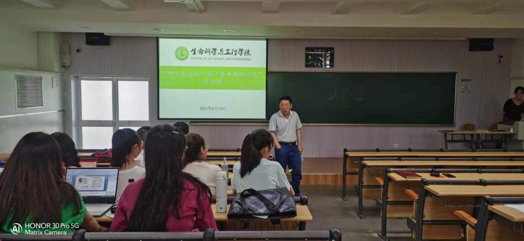 本次论坛上进行分享的是赵小亮博士和任莉研究生,他们报告的主题分别是“糖的生物学功能及其在药物开发中的应用”、“木香烃内酯对骨髓间充质干细胞成骨性分化的影响及其机制研究”。两位主讲人根据自己的科研成果和研究内容由点及面、由表及里的分析,老师们认真聆听,同学们聚精会神。在交流提问环节中,老师同学们对木香烃内酯对干细胞的成骨性分化,木香烃内酯通过何种机制对骨髓干细胞分化的影响,糖在生命体内的修饰及功能作用,糖药物在生活中的应用展开了激烈的讨论,讨论过程中得出了糖基化修饰不仅限于细胞蛋白质,核酸中也存在着糖基化修饰的结论。