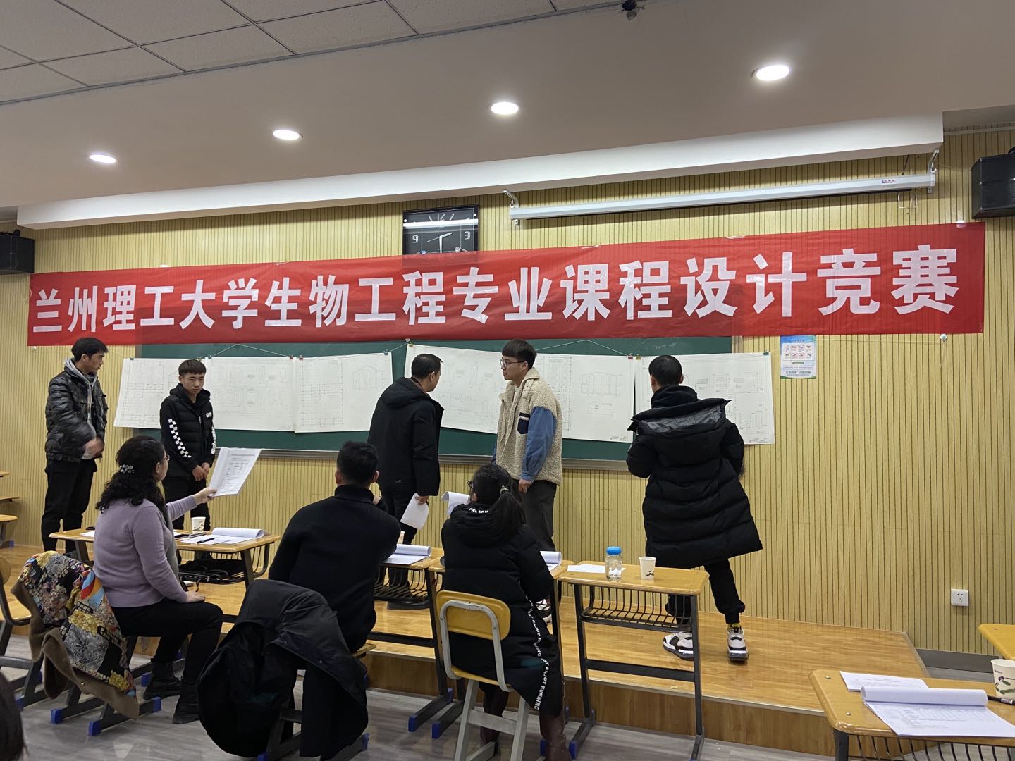 本次《生物工程课程设计》设计内容多元化,最终答辩采取团队与个人有机结合的竞赛形式,依据设计题目和参数分成18个小组(每组2至3人)进行答辩。各组同学通过展示设计图纸,主讲人介绍设计思想、设计内容及结果,并由组员补充说明的形式进行汇报,答辩委员会专家对课程设计中的关键环节、图纸质量及撰写细节等方面给予指导点评,并提出了修改及完善的意见和建议。评委专家根据团队整体表现和个人在团队中的表现给每位员工现场评定打分,最终52名同学均通过了本次答辩。在各位老师和同学们的紧密配合和共同努力下,2017级生物工程专业的《生物工程课程设计》竞赛答辩工作圆满结束。