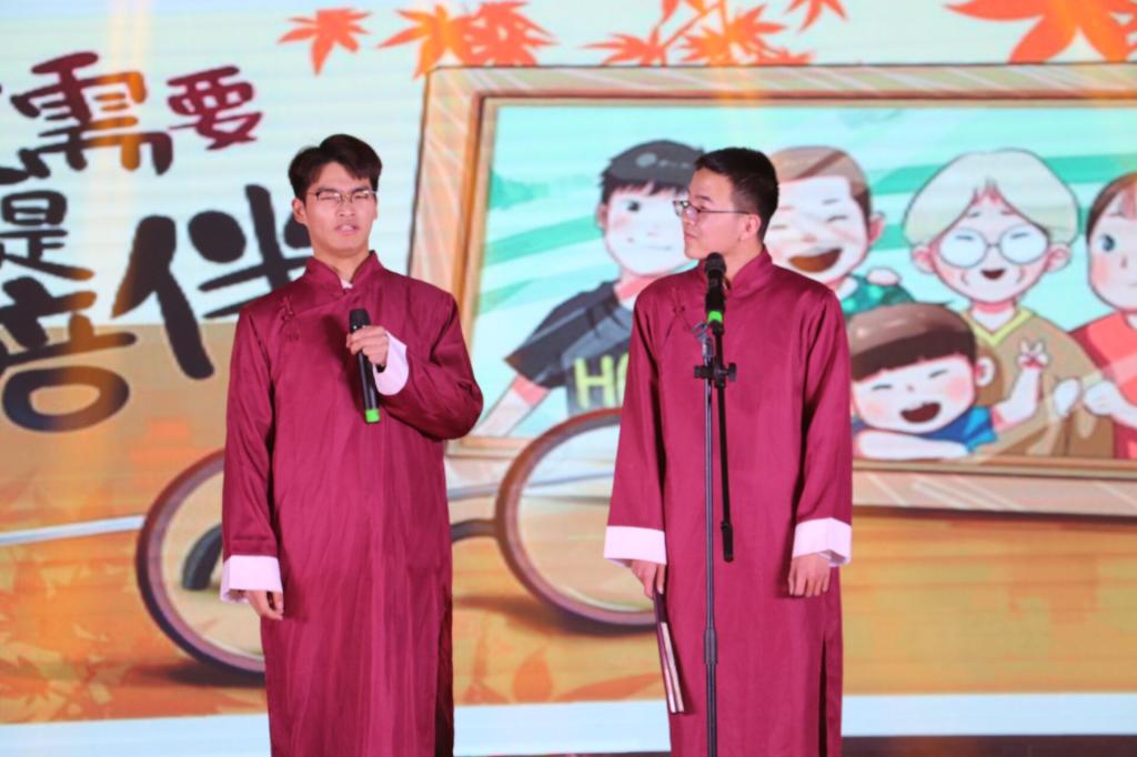 20:00点整晚会在主持人们饱含激情的开场白下拉开了序幕。同学们为这次晚会准备了精彩绝伦的表演,有低唱浅斟的歌唱《月半小夜曲》、激情澎湃的舞蹈《疯狂芒果》、雅俗共赏的相声《回家》、……还有《咋了爸爸》《小人舞》中场节目给晚会增添了不欢乐气氛。同学们的欢呼声此起彼伏,将晚会的气氛推向一次又一次高潮。晚会最后,新教工的《我和我的祖国》,给予晚会一个温暖的结尾。