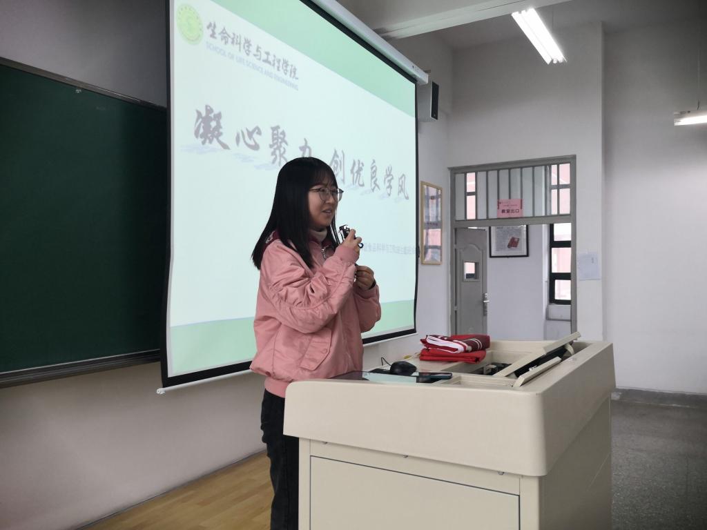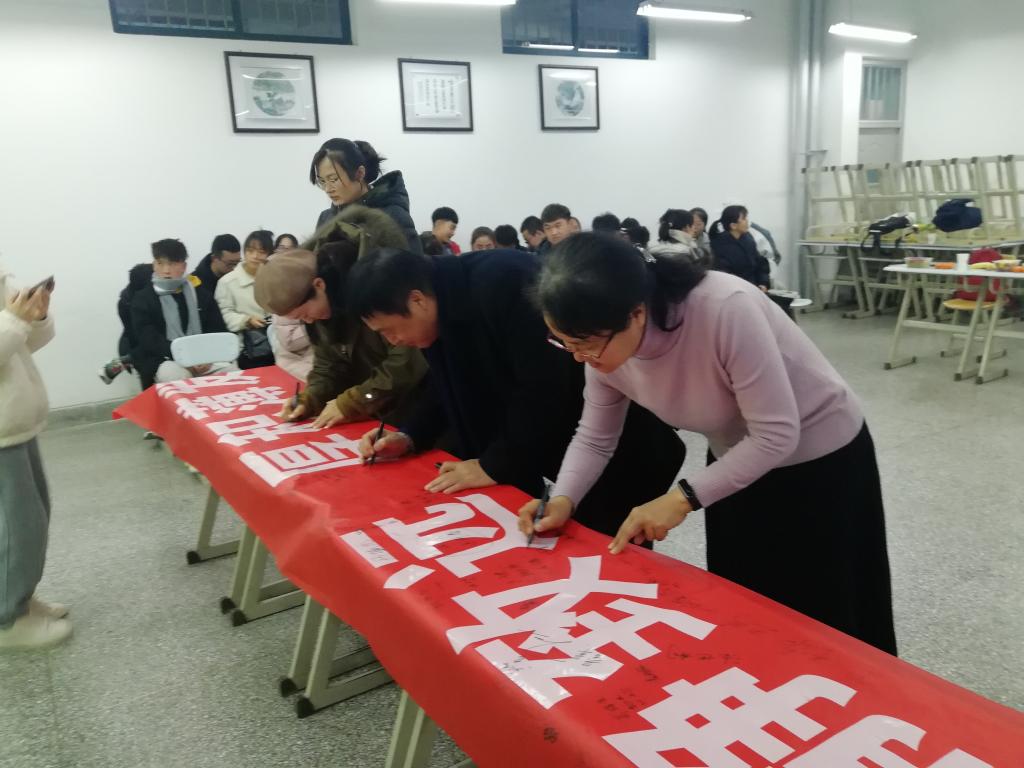 俞树荣副董事长对19食品班同学们在过去一年学风建设方面取得的成绩和本次活动的精心策划表示肯定,他通过例举两名员工从不适应老员工活到成功逆转的故事,鼓励同学们要热爱大学和专业,通过勤奋努力赢得精彩人生,将班会气氛推向高潮。下一环节大家一起观看了同学们自编自导的心理剧短片《热爱》,石易迪同学分享了视频制作的初衷“一个人可以走得很快,但一群人会走得更远”,让同学们认识到了班级团队凝心聚力的强大和震撼。最后俞树荣副董事长和武军莉副书记对本次班会进行了总结,对食品科学与工程一班寄予厚望,鼓励同学们明确目标,奋勇前行。班会结束后,全体师生一起在学风建设倡议上签名,并合影留念。