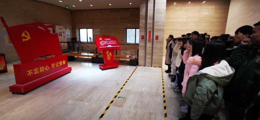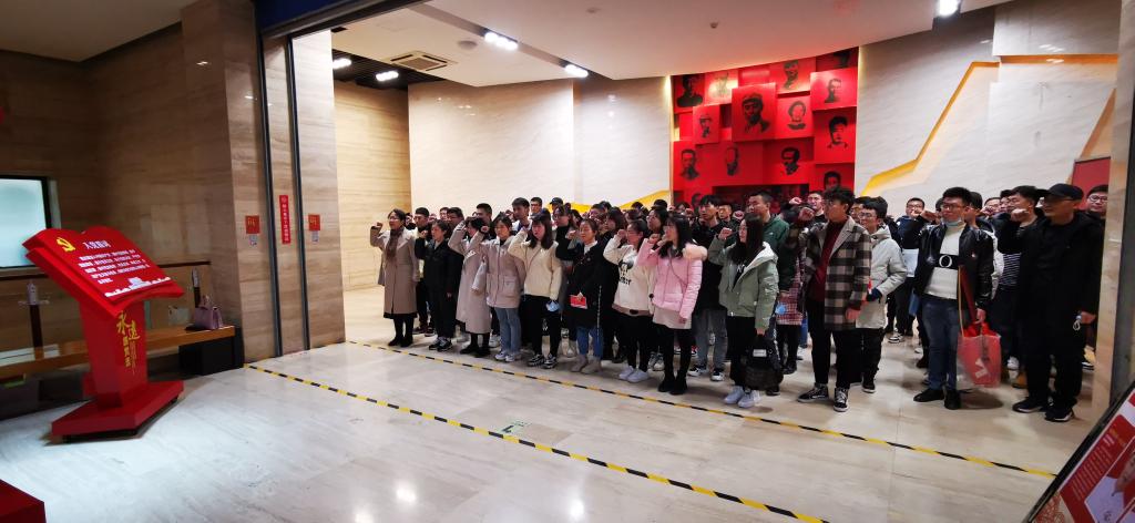 参观结束后,全体人员在纪念馆大厅面向党旗,高举右拳,跟随党委副书记武军莉庄严宣誓,重温入党誓词,再次对加入党组织作了郑重的承诺。