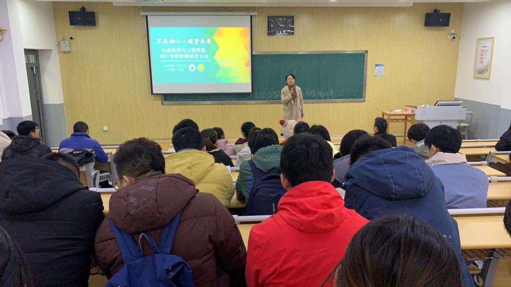 为助力本科毕业生考研工作,提高人才培养质量,k8凯发于11月27日下午在兰工坪校区1号楼107教室召开2021届本科毕业生考研冲刺动员大会。k8凯发经理伍国强、党委副书记武军莉、辅导员王苍海及112位考研同学参加。