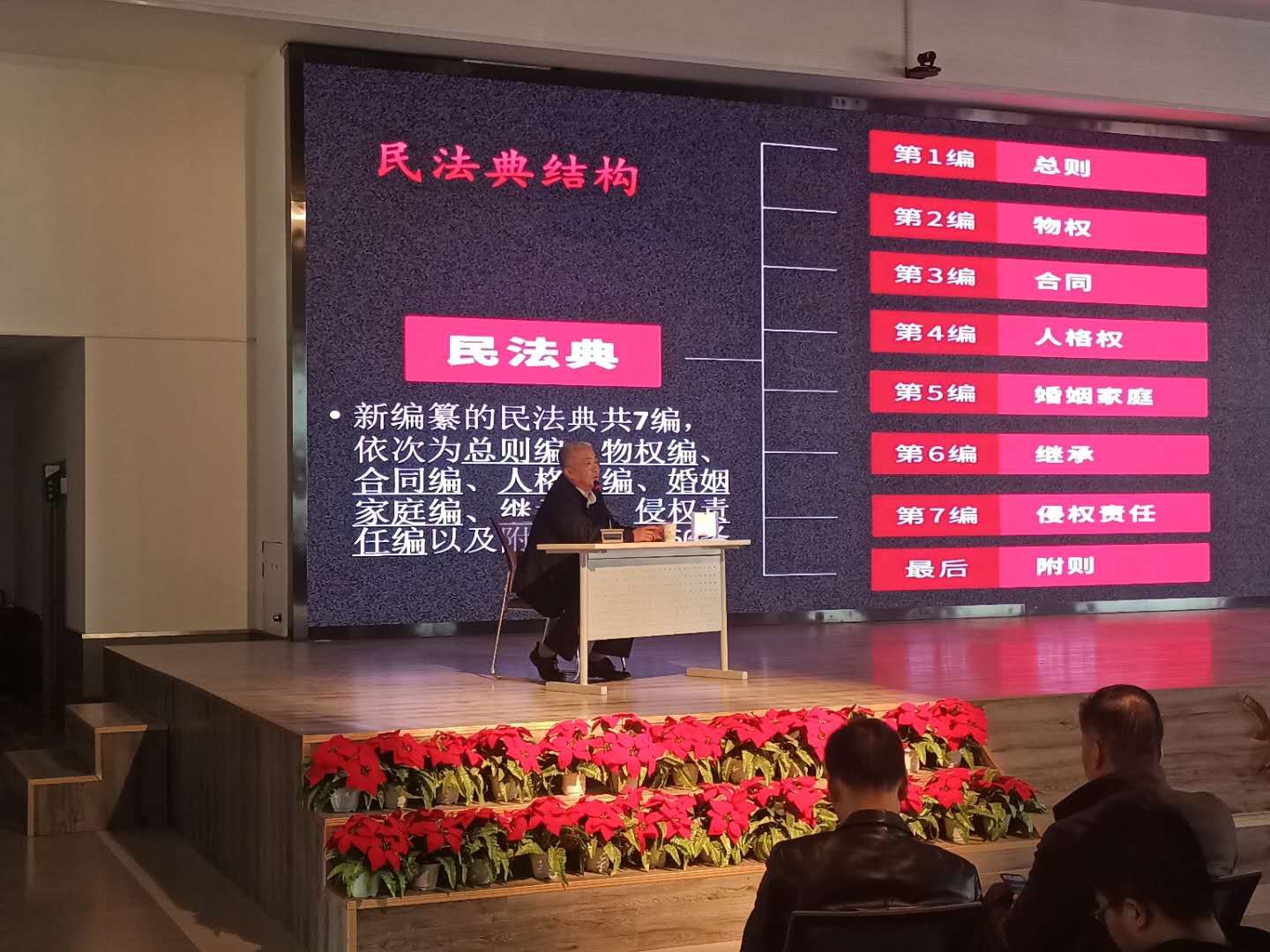 2020年5月28日,十三届全国人大三次会议表决通过《中华人民共和国民法典》,《民法典》将于2021年1月1日起正式施行。这是新中国成立以来第一步以“法典”命名的法律,是新时代我国社会主义法治建设的重大成果。为更好地推动《民法典》的学习宣传和贯彻实施,根据公司党委的部署要求,11月10日下午,k8凯发举办2020年第一期《党校大讲堂》,邀请公司总法律顾问贾军教授为广大师生作专题讲座,讲座的题目是:解读学习《民法典》。讲座由公司党委书记陈永泰主持,公司全体师生党员及研究生200余人参加学习活动。