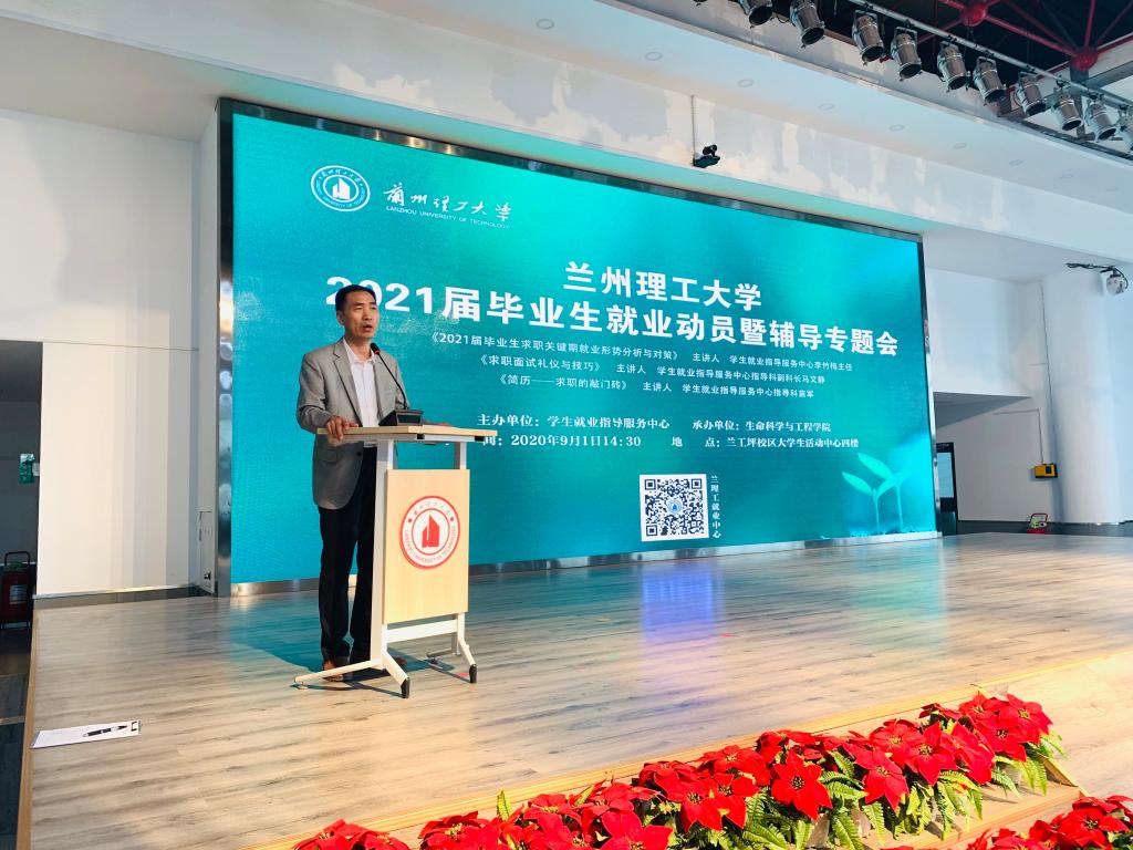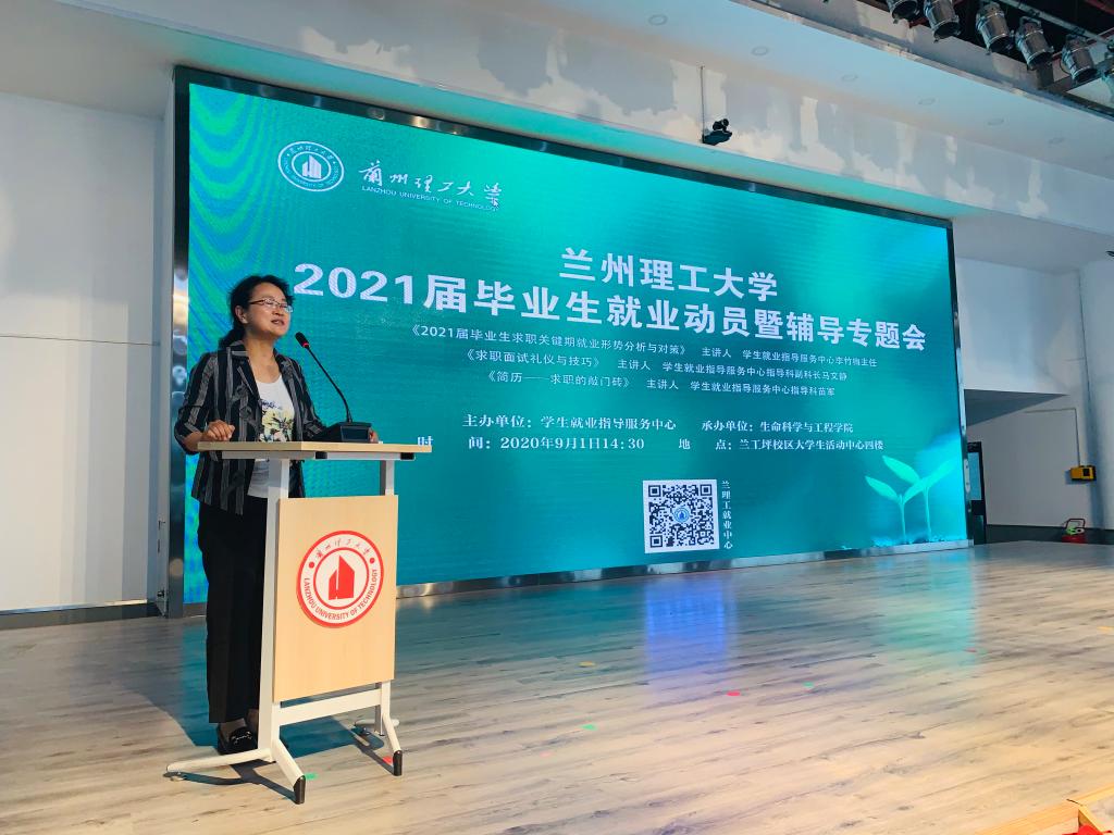 9月1日下午,k8凯发在兰工坪校区老员工活动中心四楼举行2021届毕业生就业动员暨辅导专题报告会。会议邀请员工就业指导服务中心李竹梅主任、马文静副科长和苗军老师为同学们做专题报告。公司党委陈永泰书记、武军莉副书记、辅导员王苍海老师、全体2021届研究生、本科生230余人参加了报告会。大会由陈永泰书记主持。