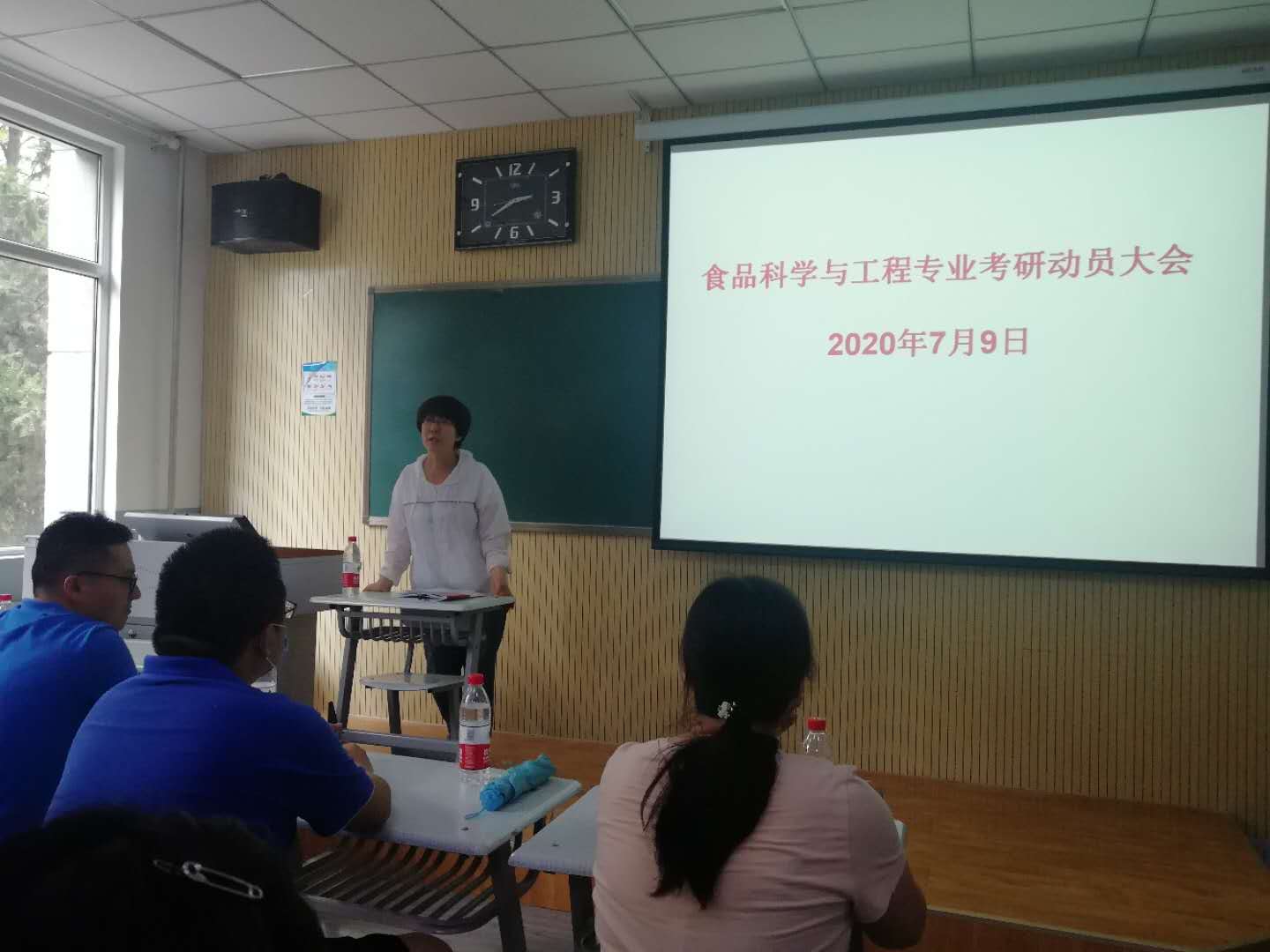食品科学与工程专业于2020年7月9日下午14点30分,在校本部1号楼203教室组织2017级考研动员会。动员会由食品系主任王雅老师主持,k8凯发主管本科教学的任海伟副经理出席了会议,其余参加会议的还有食品专业老师张百刚、范文广、曹莹莹、相炎红、田辉、冯再平以及17级食品科学与工程专业全体员工。