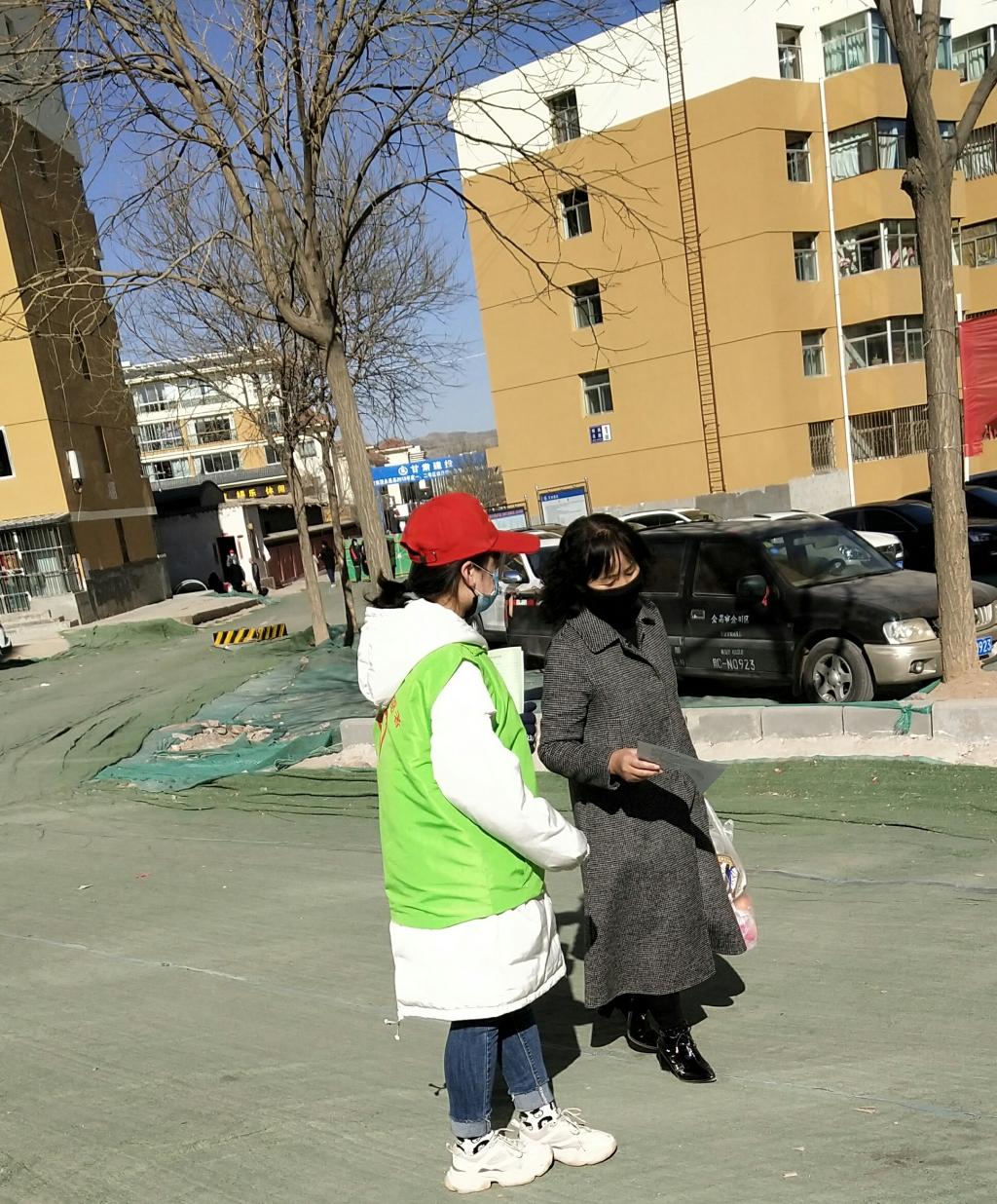 在疫情防控的关键时期,根据中央部署,永昌县积极采取了一系列有效的防控措施,共青团永昌县委员会向社会发出了征集防疫志愿者的通知,作为一名老员工党员,她每天关注疫情发展,深刻认识到疫情的严重性。她一面听从安排居家隔离,一面想为国家、社会做点什么。当看到招募令后她及时向公司党委、党支部书记汇报想法,经批准后她义无反顾的加入了疫情防控青年志愿服务队这个大家庭当中。在做志愿者工作中她严格执行省、市、县委防疫工作要求,团队分工明确,有序开展疫情防控青年志愿服务活动,坚守在自己的防疫岗位上,全力投入抗疫战斗。由于工作突出,现在已成为永昌西街志愿者服务队的小组长。每天工作六个小时,主要工作有:一、带领组员及时转发官方媒体发布的消息,主动传播权威信息和科学知识,增强全县人民的自我防护意识,消除社会恐慌心理。带动身边人少一些质疑,多一些理解,保持理智和冷静。二、带领组员积极抵制不实信息,不随意传播非官方渠道发布的疫情信息,不信谣、不造谣、不传谣。发现不良信息及时上报。三、带领组员劝导行人、聚集人群减少社交应酬,少去人员密集场所,做好自我防护。前两条网上完成的工作相对好做些,最后一项工作需要在广场、社区、超市等人流量大的地方进行新型冠状病毒防控宣传,对聚集的人群进行疏散、劝导和宣传。对居民进行必要的科普讲解,让群众认识到防疫的重要性和紧迫性,引导群众及时正确防疫。遇到极其寒冷的天气,大风席卷着沙尘,文燕和她的组员依然无畏严寒,奔波在县城的大街小巷,她的耳朵已被冻出血结痂,脸颊冻的通红,嗓子已经沙哑,脚上磨出血泡……但她依然坚守在岗位上,无惧身体的疼痛,成为街道上最美的风景线。