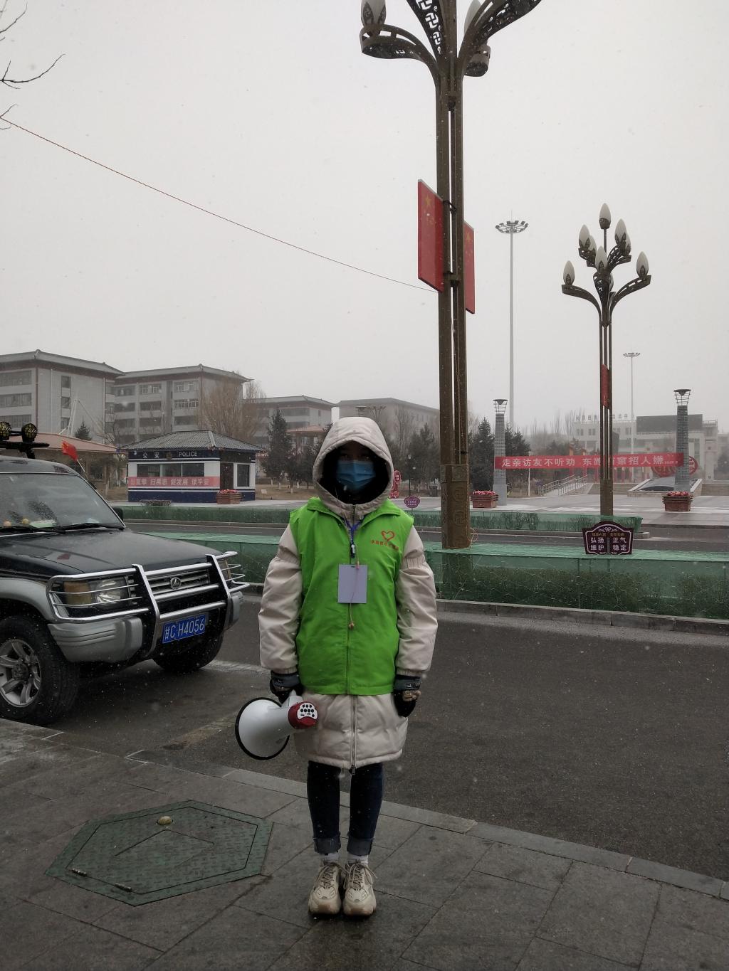 “疫情严重,请您戴好您的口罩赶快回家!” “疫情还未结束,请您不要放松警惕!”“每家每户三天派一名身体健康的成员外出购物,其他人员非必要不得外出!”……这些最朴素的话语响遍县城的西大街,千千万万遍。虽然有时会遇到一些不听劝的居民,拒不配合工作,但是她依然耐心讲解疫情的严重性,最温润的声音去感化他们,让他们尽早回家。她和她的组员为这场疫情防控阻击战注入了青春力量,用实际行动充分展现了当代老员工党员的自身价值。