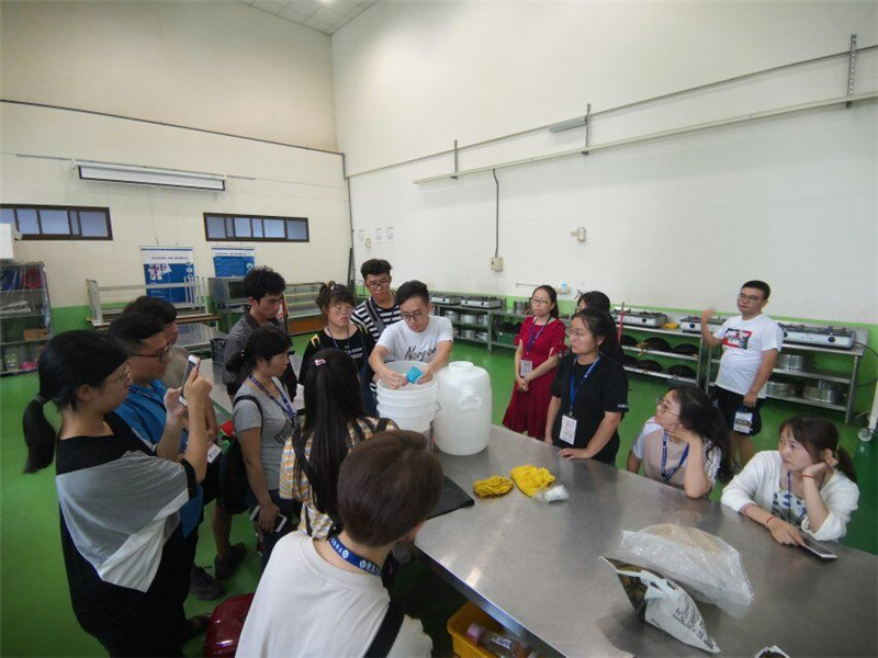 “啤酒化学与酿造”的理论专题和实验实践课程安排了三个半天(13日全天和14日上午)。13日上午的“啤酒生物化学”理论学习由食品营养学系主任钟云琴教授主讲。钟老师在简要介绍了专业和学科发展概况的基础上,从科学理论角度对静宜大学“科隆”啤酒的生产工艺做了阐述,强调了啤酒发酵原料选择、酵素(酶)选用和温度升降相对要精准控制的重要性。中午一点,实践团师生在食品营养学系的实验工厂品尝了静宜“科隆”啤酒产品的风味,学习了啤酒发酵工艺涉及的重要步骤,还调制了不同风味的冰露饮品。经过下午半天的实践训练,同学们掌握了台湾啤酒生产的工艺要点和产品风格。实验空暇时间,同学们与授课老师积极探讨,热烈交流,结课之时仍然意犹未尽。
