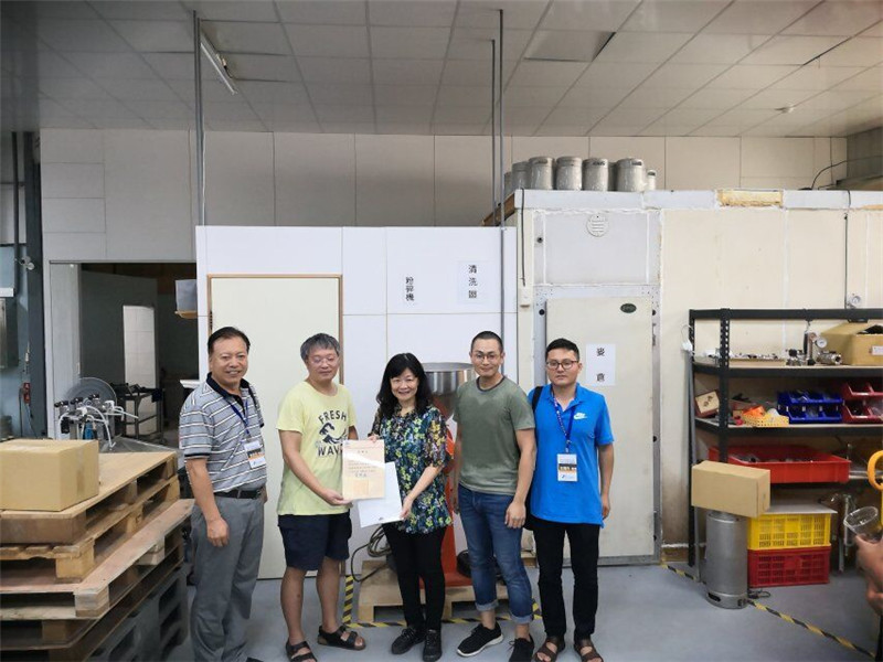 14日上午九点,中雨。在钟云琴主任、李雨蓁和谭智远两位员工志愿者的引领下,驱车一个多小时到达新竹县竹北市津采酒业有限公司,受到公司领导和员工的热忱欢迎。酿酒工程师柯仁程按照啤酒酿造程序对照工厂设备,依次对麦芽糖化、麦汁过滤、啤酒花添加、麦汁煮沸、回旋沉淀、酿造发酵等操作工序做了详细介绍,并回答了同学们提出的技术性问题。临别之际,总经理林坤生先生赠送了公司生产的“迎曦”和“凤凰桥”啤酒,让实践团师生品尝鉴赏。同学们表示,公司生产的啤酒味道浓郁,杀口性强,口味独特,印象深刻。实践参观过程中,带队老师李志忠、任海伟和公司领导做了亲切交谈,询问了“妈妈嘴咖啤金色波特”啤酒的来源与制作工艺;同学们和工程师也热烈探讨了高酒精度啤酒“简而不繁”的生产工艺之关键所在。