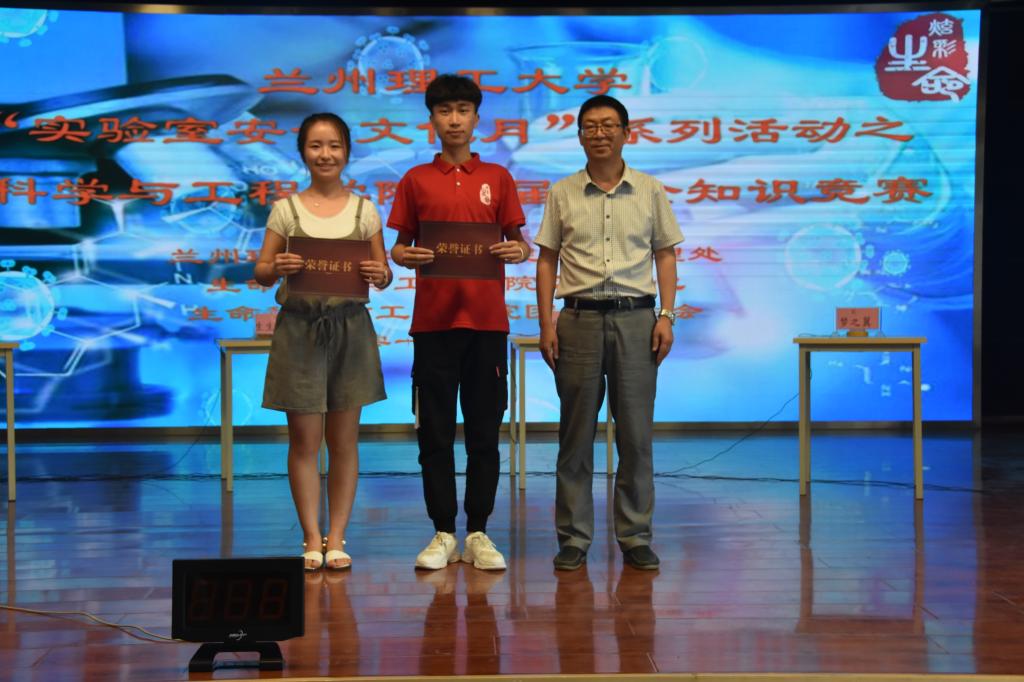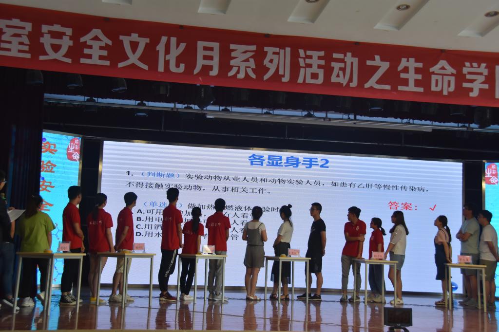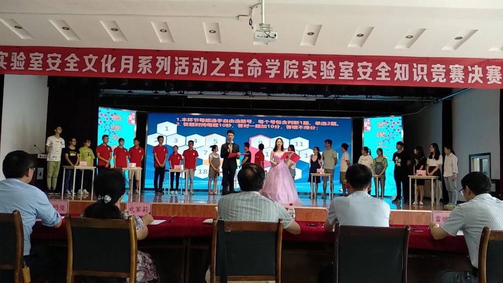 决赛第一个环节由每支队伍展示原创的安全文化作品,评委打分,参赛队伍有的将安全知识制作成音乐动画、有的编制成实验室安全教育Rap和歌曲,同时还原日常实验场景,纠正违规操作,伴随着节奏感极强的说唱和生动有趣的卡通动画,将趣味性、文艺性融入科学、严肃的安全知识。随后通过“各显身手”、“争分夺秒”、“齐心协力”三个阶段必答题、抢答题的激烈角逐,决出了一、二、三等奖。