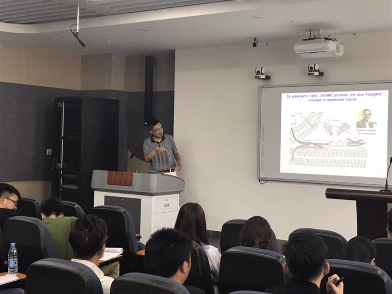 郑环泉博士结合他领导的研究团队多年研究成果,深入浅出地报告了十字花科植物芜菁花叶病毒的作用方式和扩散途径,重点阐述了囊泡的“胞吞”或“胞吐”在植物细胞间扩散病毒的作用机制。另外,郑博士的报告还从分子水平阐述了该病毒得以复制和扩散的“秘密”在于其自身形成的蛋白“6K2”与植物细胞内膜蛋白(“RHD3”和“SNARE”)的互作。