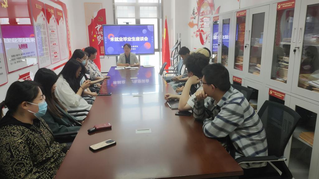 在未就业员工推进会上,武军莉为与会同学详细讲解了就业政策、考研考公形势,逐个了解未就业同学求职中存在的困难和问题,针对性提出解决办法,并根据员工个人情况和就业意向推荐适宜的工作岗位,全力促就业。