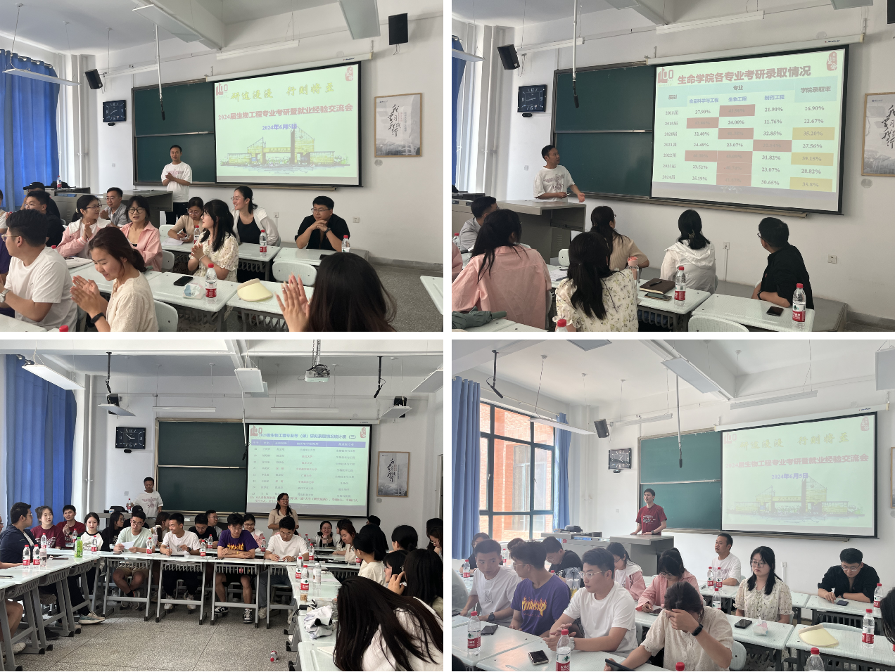 高年级毕业季的到来,也意味着低年级新一阶段的学习拉开序幕。为了继续夯实公司学习风气,传承公司“传帮带”的优良传统,拓宽员工的未来去向选择,为大三同学考研和就业指明方向,生物工程系于6月5日下午在彭家坪校区蔚云楼110教室,举办了一场大四与大三年级联动考研暨就业经验交流会。