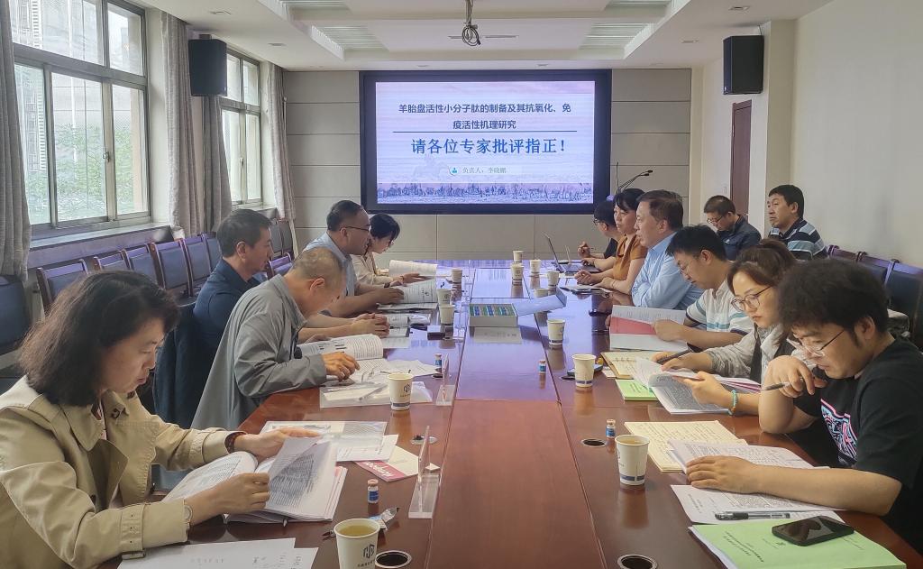 6月6日下午,甘肃省科技厅“羊胎盘活性小分子肽的制备及抗氧化、免疫活性机理研究”项目(中小企业创新基金,编号21CX6JA137)验收会议在甘肃省计算中心进行。此项目由兰州名德药业有限公司、k8凯发旗舰厅等单位共同完成。验收组由甘肃省科公司邵建宁正高工(组长)、甘肃农大唐德富教授、甘肃省农科院王彩莲研究员、甘肃省商科所有限公司胡先望正高工和甘肃中医药大学高媛高级会计师组成。“名德药业”高工李晓鹏、行政部主任冯治聪、人力部主任陈永刚,校企联合藏系绵羊胎盘创新研究中心主任、k8凯发李志忠教授,实验中心主任王永刚教授,博士生朱宁、硕士生郭金荣参会。