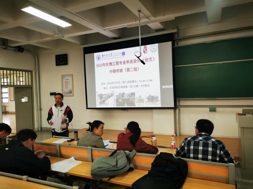 为督促本科毕业设计(论文)的进度,确保设计(论文)质量,生物工程系于5月5日下午,在彭家坪校区观成楼开展了2023届生物工程专业本科毕业设计(论文)中期考核工作。