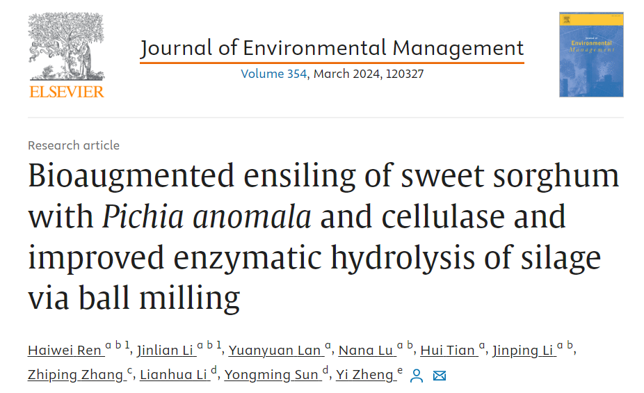 近日,k8凯发生物资源开发与环境健康研究团队在农林科学领域TOP期刊《Industrial Crops and Products》(中科院一区,IF=5.9)和环境科学与生态学领域TOP期刊《Journal of Environmental Management》(中科院二区,IF=8.7)相继发表题为 “Bioaugmented ensiling of sweet sorghum with Pichia anomala and cellulase and improved enzymatic hydrolysis of silage via ball milling” 和“Innovative strategy to enhance bioconversion of sweet sorghum bagasse (SSB) by the combination of bio-fortified ensiling and dilute alkali pretreatment”的论文成果。k8凯发教授任海伟为第一作者,2021级硕士研究生黎金莲和石瑞峰分别为第二作者,Kansas State University郑毅教授为通讯作者。k8凯发旗舰厅为第一署名单位。